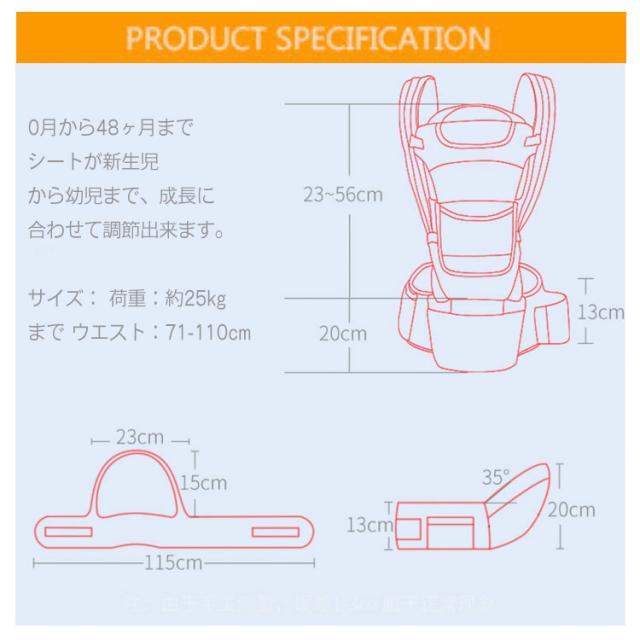 | サイズについての説明 | サイズ: 荷重:約25kgまで ウエスト:71-110cm |