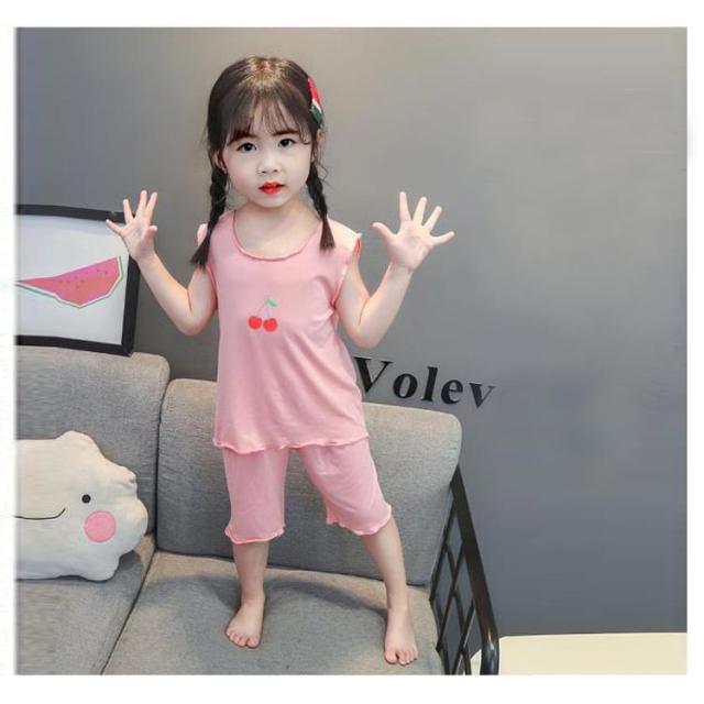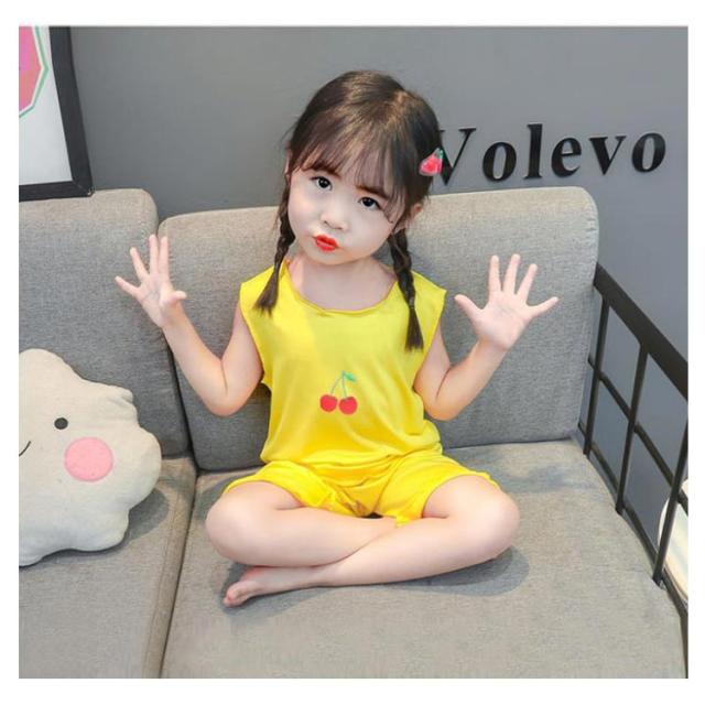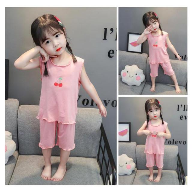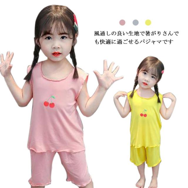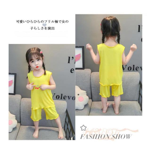 パジャマ キッズ 女の子 春 夏 韓国子供服 送料無料 部屋着 寝間着 小学生 綿 ノースリーブ フリル かわいい おしゃれ 上下セットアップ 薄い 薄手 涼しい コットン 90 100 110 120 130 140