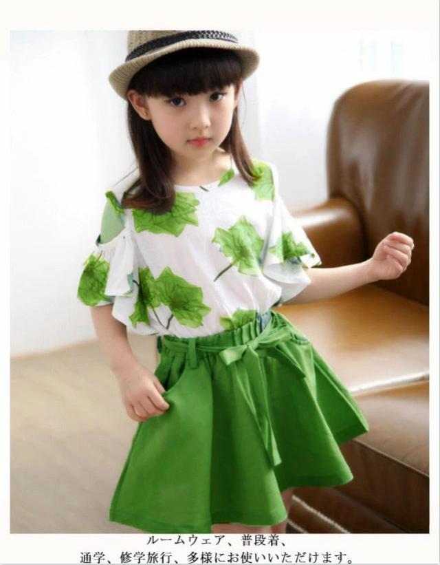 子供服 女の子 Tシャツ スカート 2点セット 上下セット セットアップ キッズ服 トップス キッズ服 肩出し 花柄 春夏 通学 旅行 海遊び 普段着 可愛い 送料無料