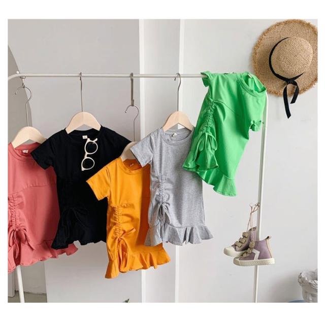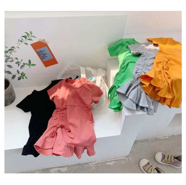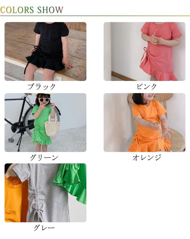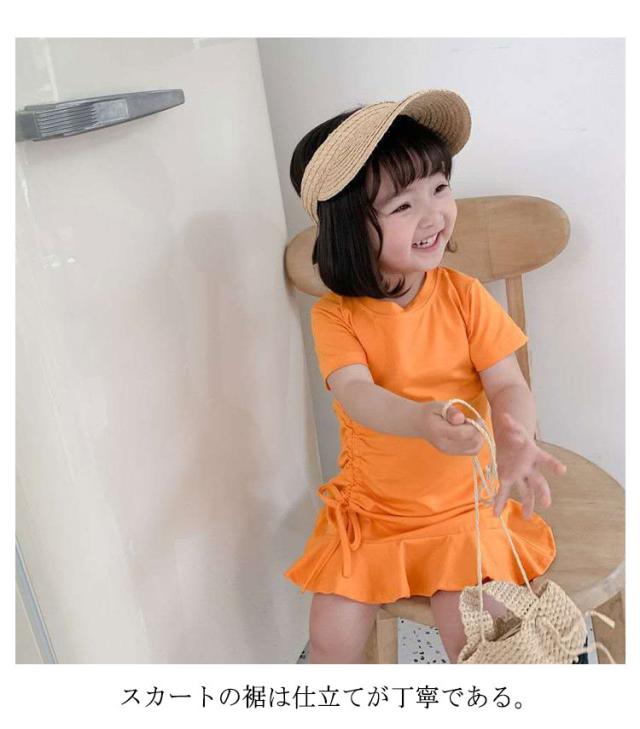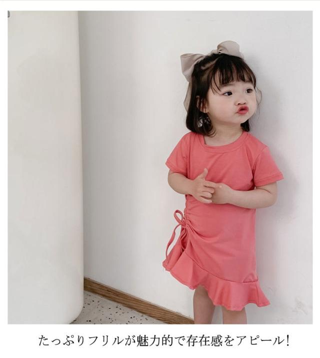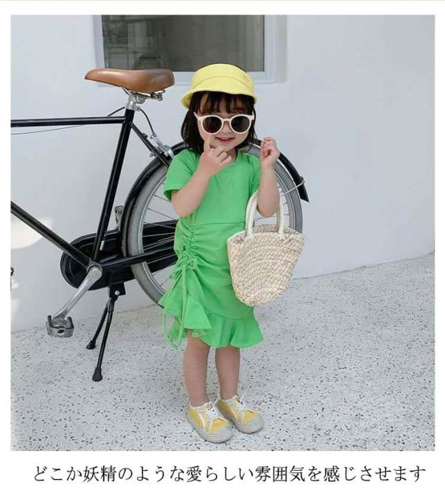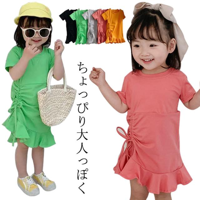 キッズ ワンピース 夏 半袖 子供服 キッズ 女の子 フリル シンプル 結婚式 カジュアル 紐 安い かわいい 80 90 100 110 120 130 送料無料