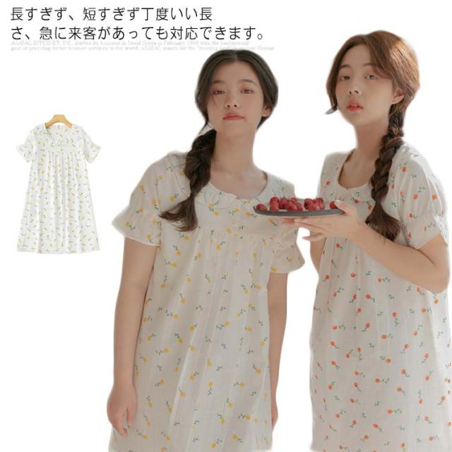 送料無料 パジャマ ダブルガーゼ ガーゼパジャマ ナイトウェア ルームウェア 綿100% コットン レディース 可愛い 部屋着 半袖 襟なし ワンピース 涼しい 寝間着 大きいサイズ 通気性 夏 薄手 花 女の子 女性