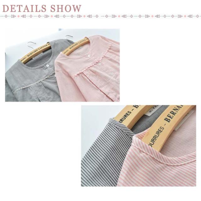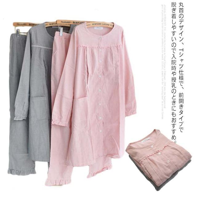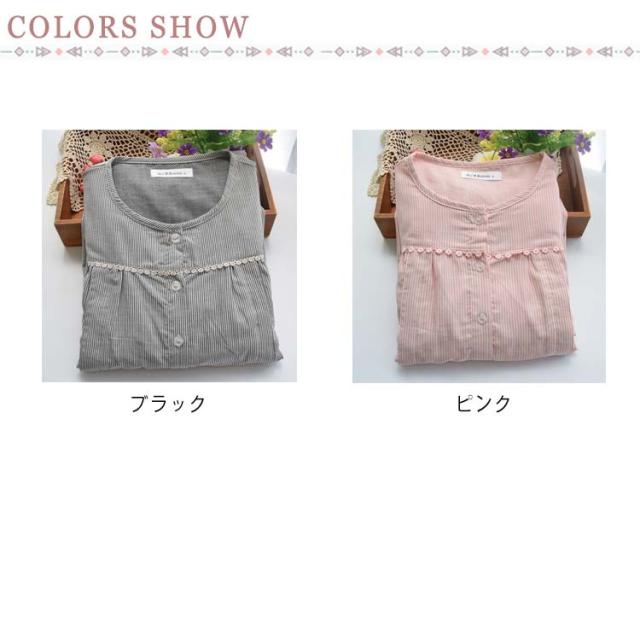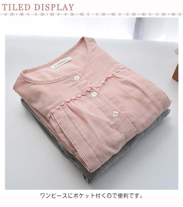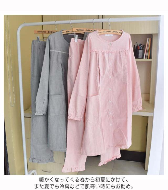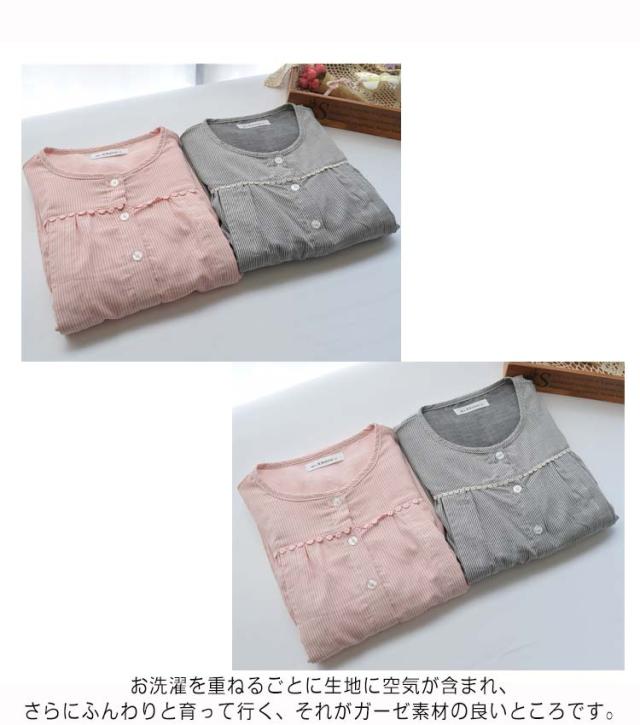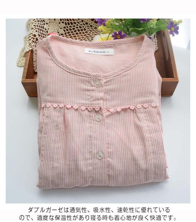 送料無料 パジャマ ダブルガーゼ ガーゼパジャマ 綿100% コットン ストライプ 上下セット 前開き ルームウェア 哺乳 授乳 レディース 部屋着 長袖 襟なし ナイトウェア シャツパジャマ 寝間着 大きいサイズ 通気性
