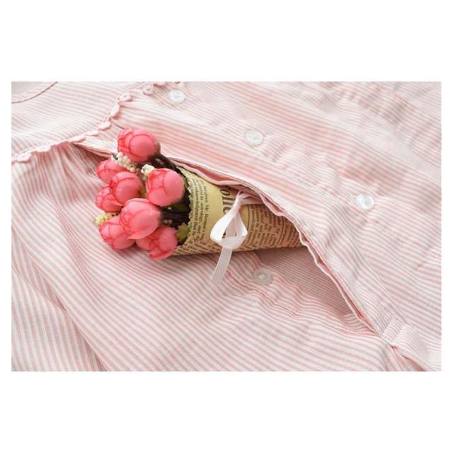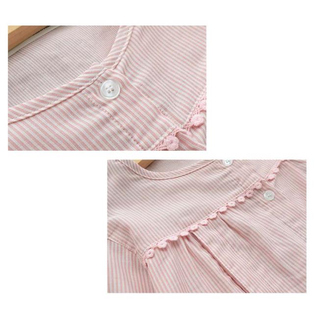 | 丸首のデザイン、Tシャツ仕様で、前開きタイプで脱ぎ着しやすいので入院時や授乳のときにもおすすめ。 ワンピースにポケット付くので便利です。 ダブルガーゼは通気性、吸水性、速乾性に優れているので、適度な保温性があり寝る時も着心地が良く快適です。 睡眠時には沢山の汗をかきますが、快適に過ごせるのは放湿性も優れているからです。 お洗濯を重ねるごとに生地に空気が含まれ、さらにふんわりと育って行く、それがガーゼ素材の良いところです。 暖かくなってくる春から初夏にかけて、また夏でも冷房などで肌寒い時にもお勧め。 | |