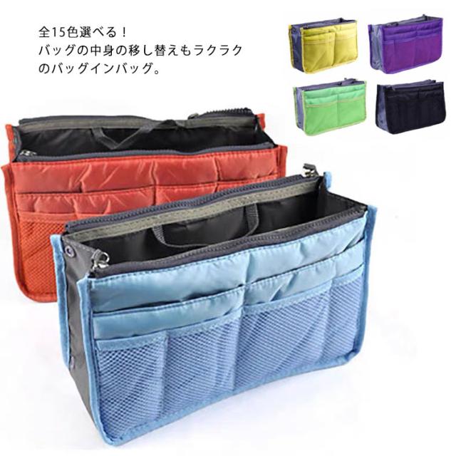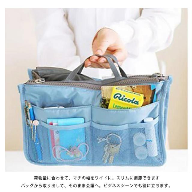 ポケット充実でバッグの中を整理整頓!バッグinバッグ インナーバッグ バッグインバッグ 旅行 出張 トラベルポーチ ファスナー付 収納ケース ポーチ 小物収納 レディース メンズ 持ち手付き