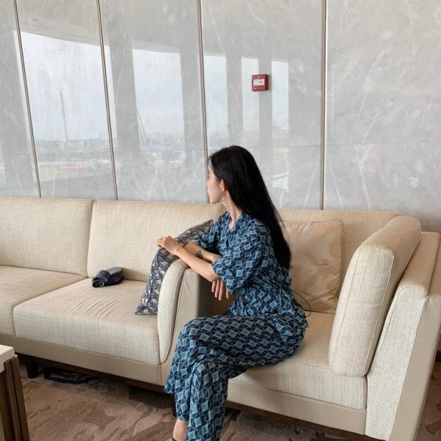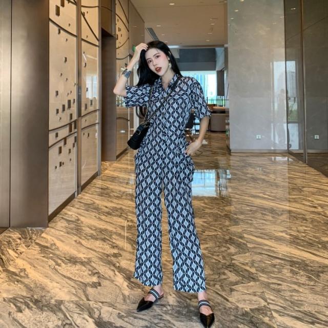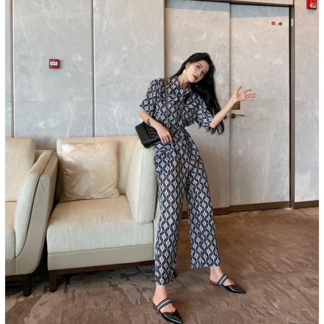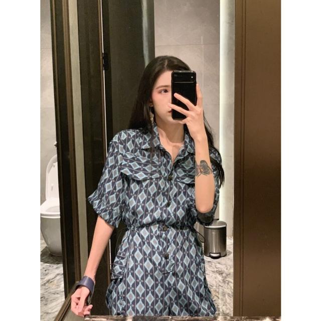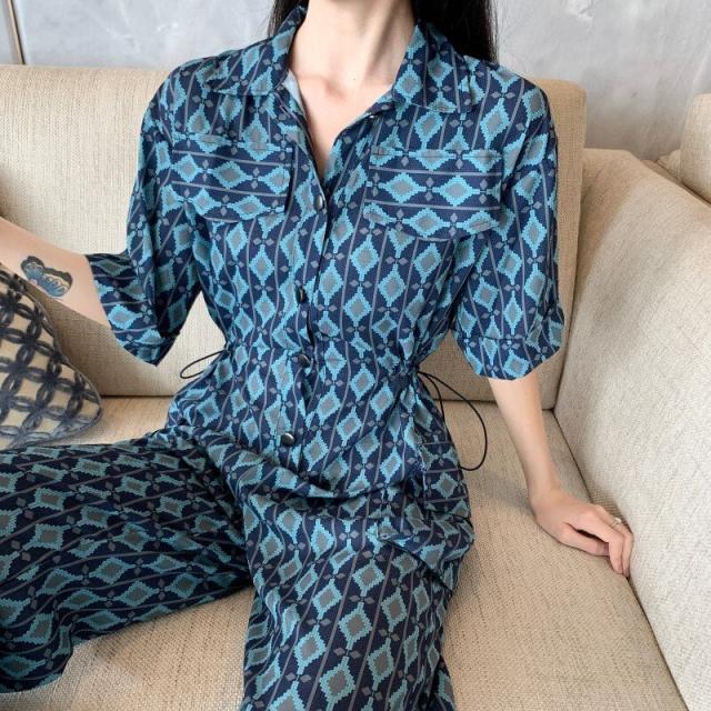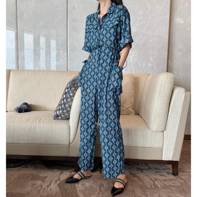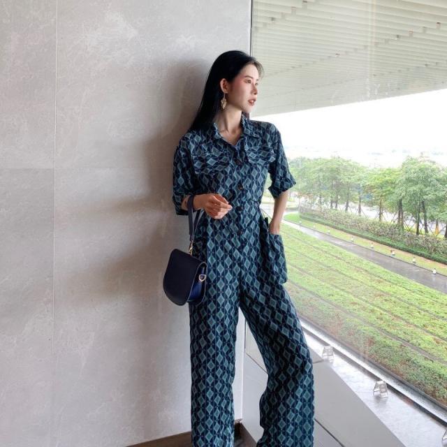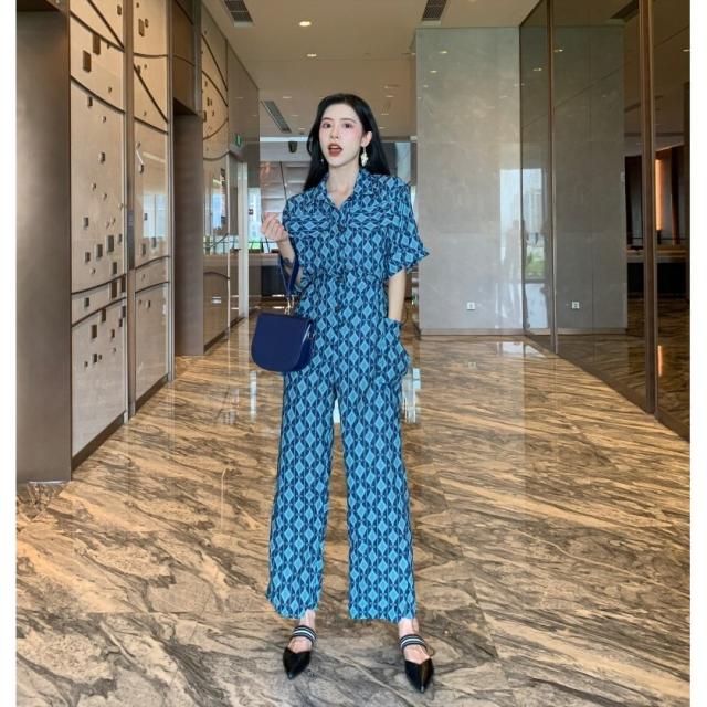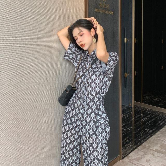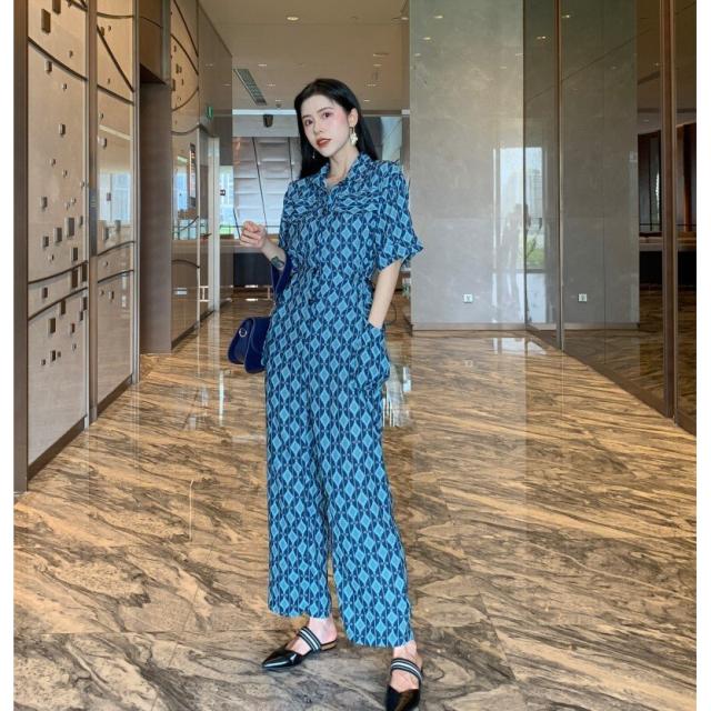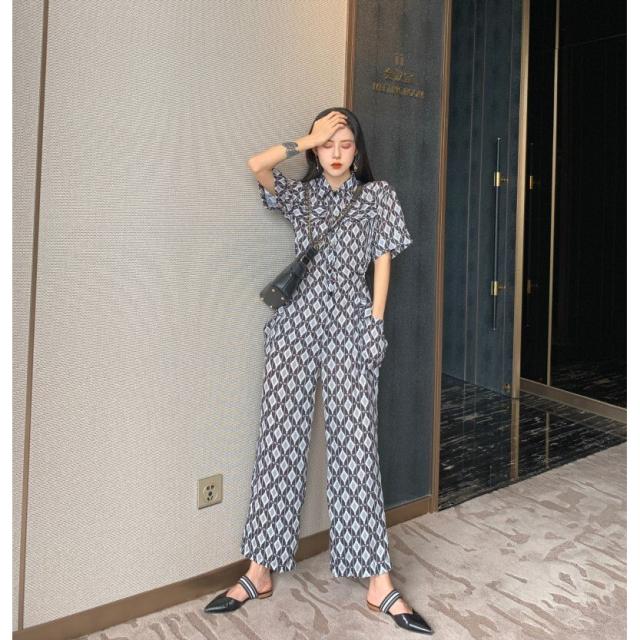 春新作 オールインワン サロペット ロンパース レディース 半袖 ハイウェスト ワイドパンツ 春 夏 秋 幾何学模様 ビーチ 海