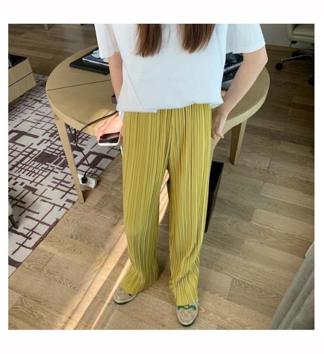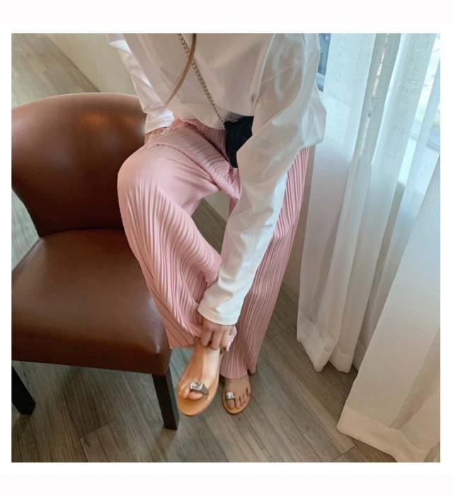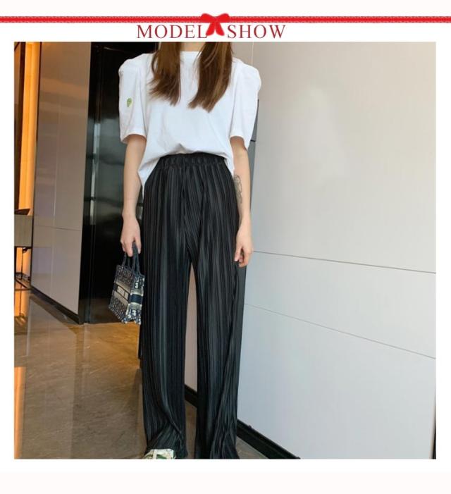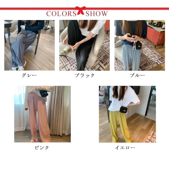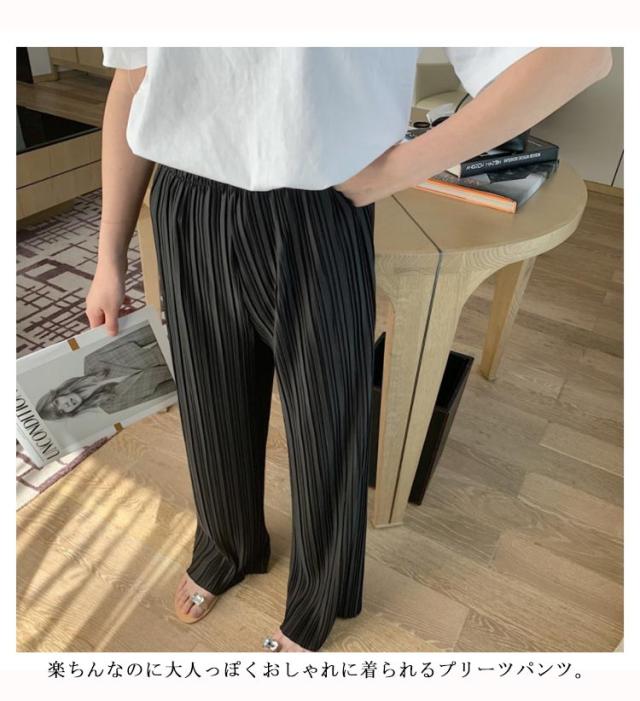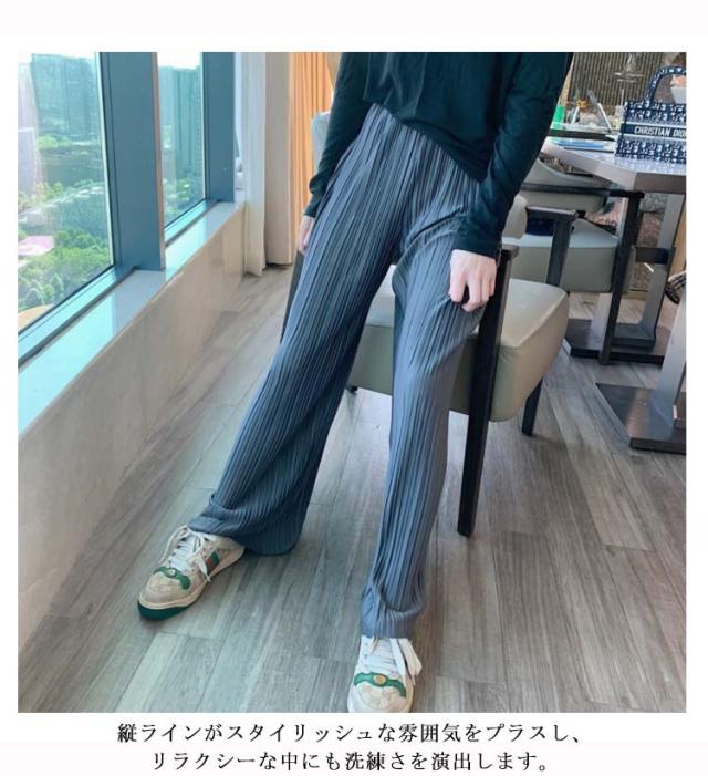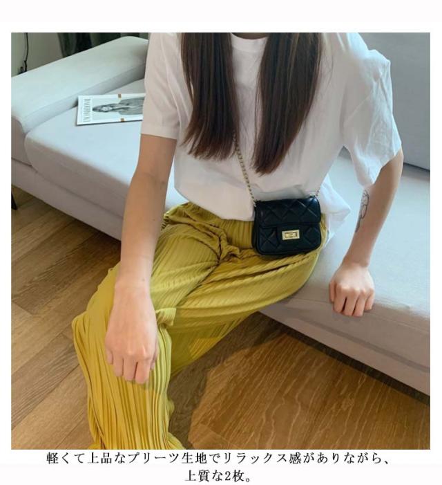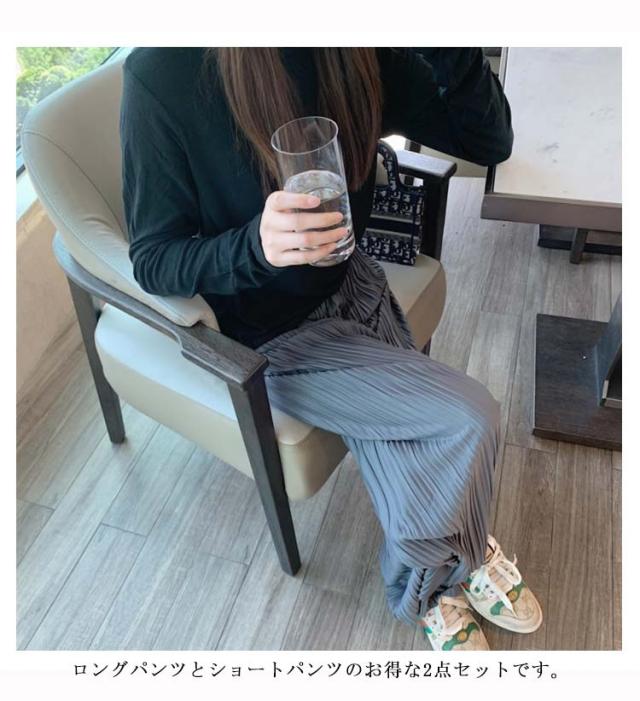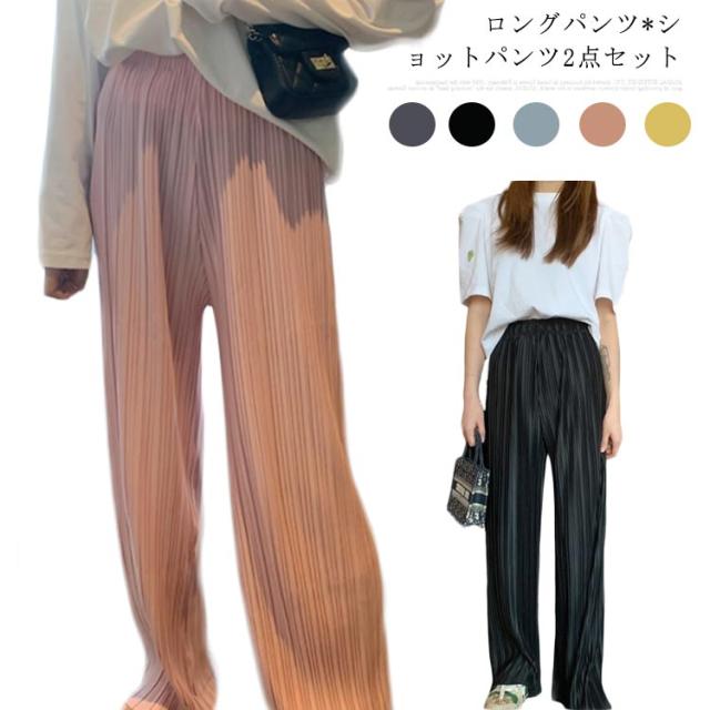 【送料無料】プリーツパンツ レディース ロングパンツ ワイドパンツ 夏服 シフォンパンツ ボトムス 2点セット ルームウェア ショートパンツ ルーズ ハイウエスト 無地 シンプル