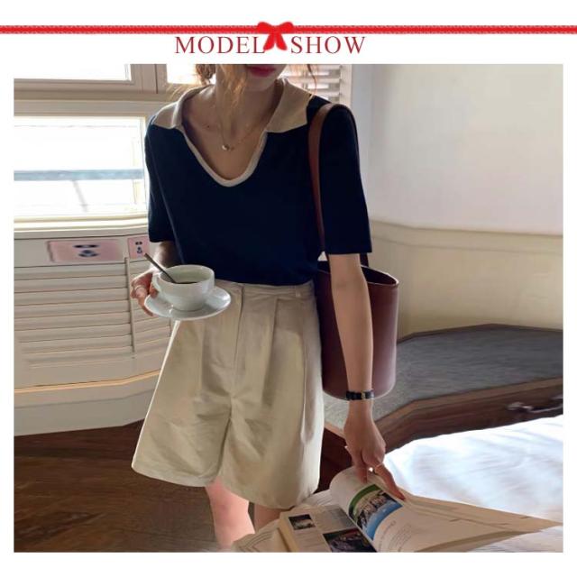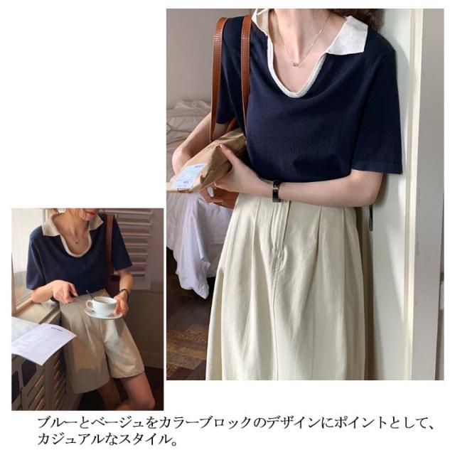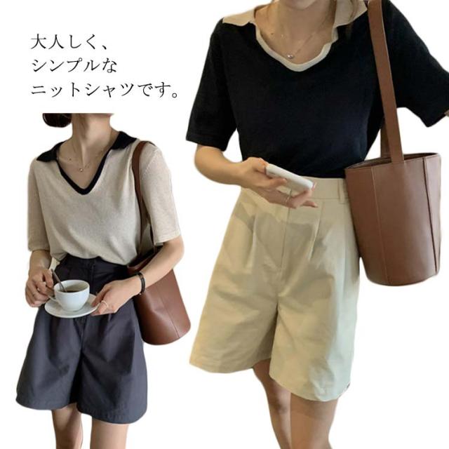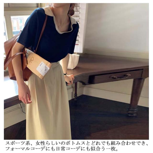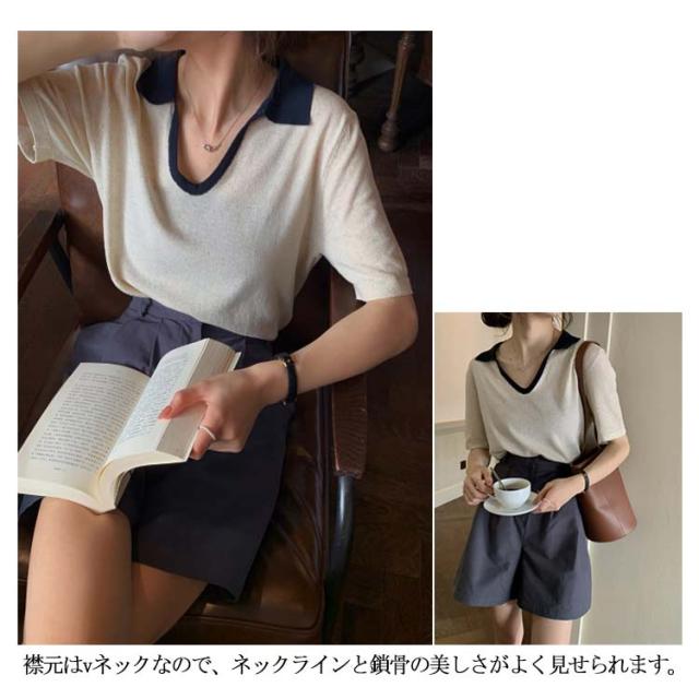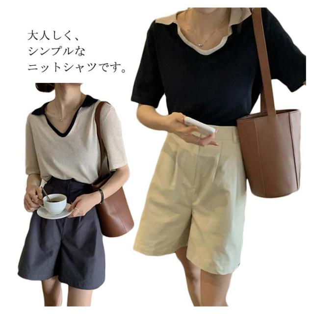 【送料無料】ポロシャツ レディース 半袖シャツ トップス カットソー Tシャツ ニットシャツ サマーニット プルオーバー vネック おしゃれ ゆったり 涼しい スポーツ フェミニン シンプル カジュアル