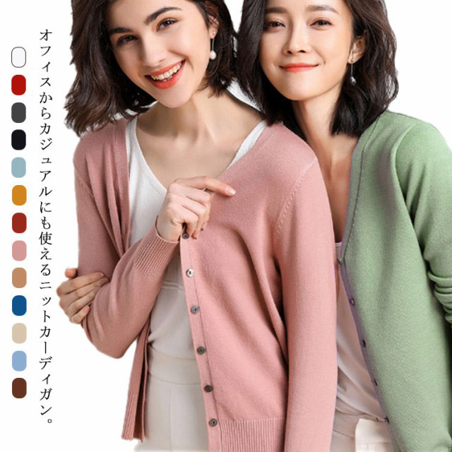 (送料無料)カーディガン ニット レディース 制服 トップス 事務服 羽織り 長袖 ゆったり 無地 Vネック オフィス ニットカーディガン 体型カバー 羽織物 春 夏 韓国ファッション 紫外線対策 日焼け防止