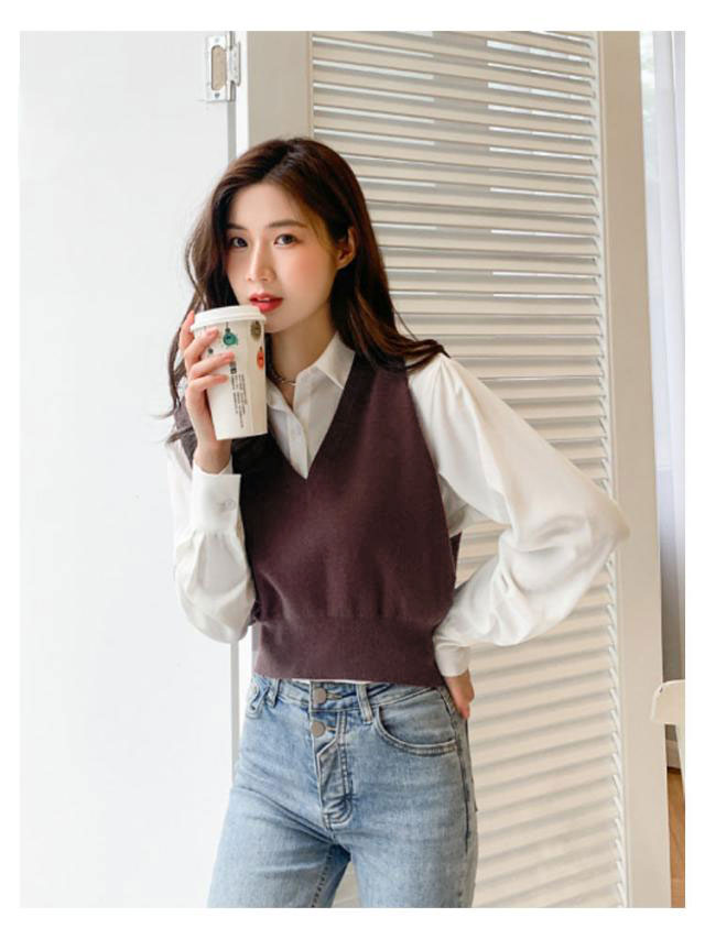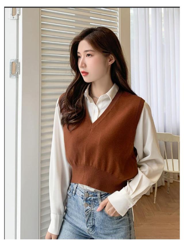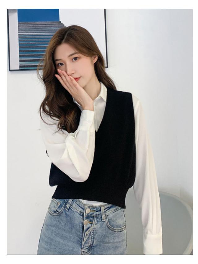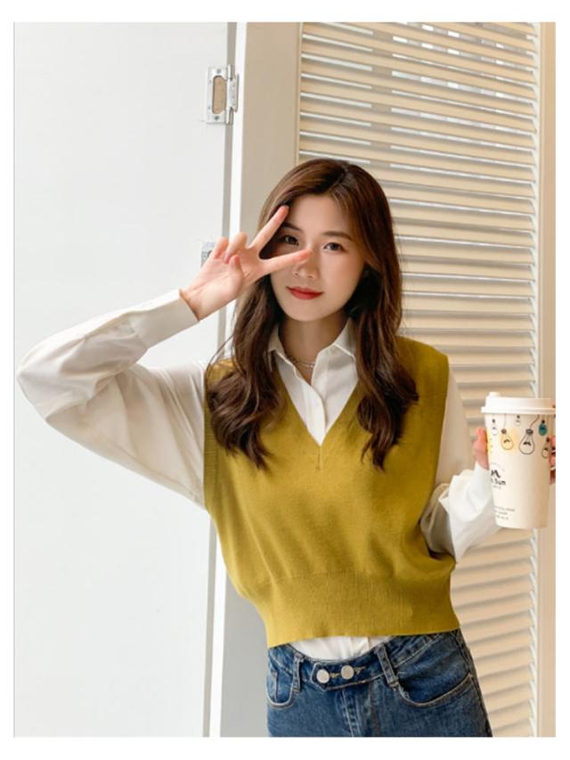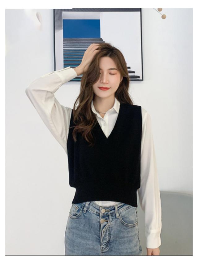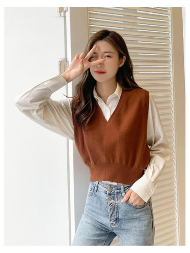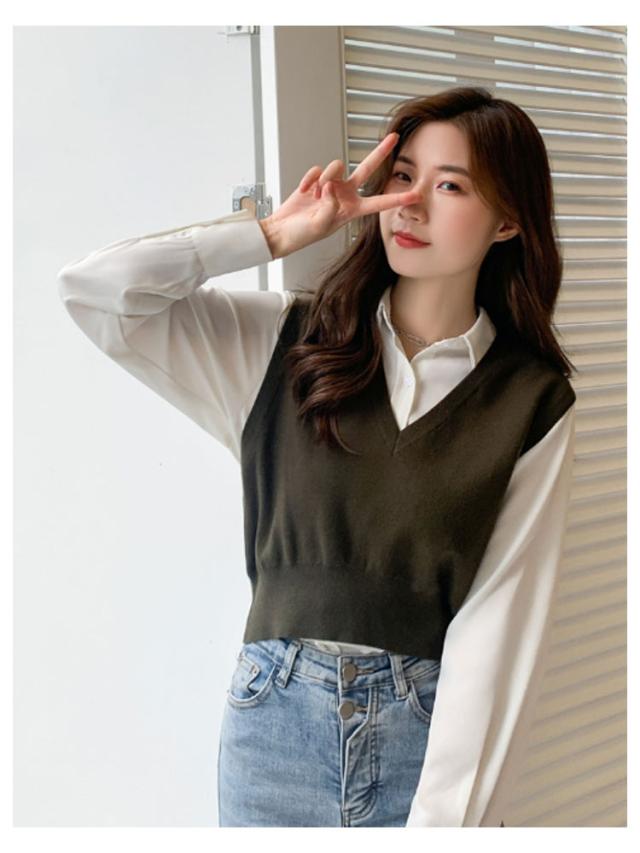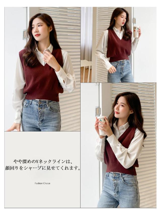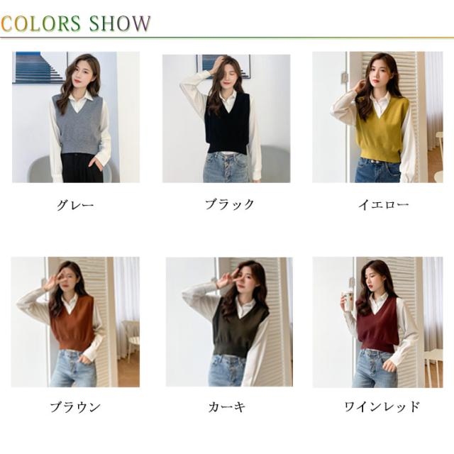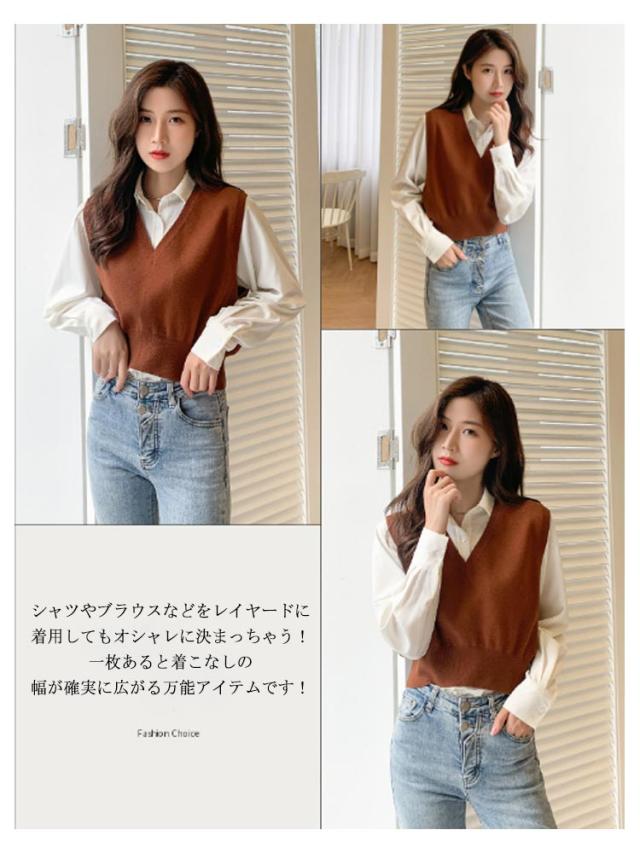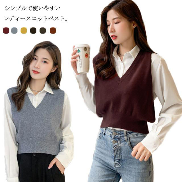 ニットベスト レディース ニット ベスト 薄手 ノースリーブ トップス ショート丈 Vネック プルオーバー シンプル 無地 定番 送料無料 重ね着 ショート丈ベスト カジュアル 韓国ファッション ジュニア 制服