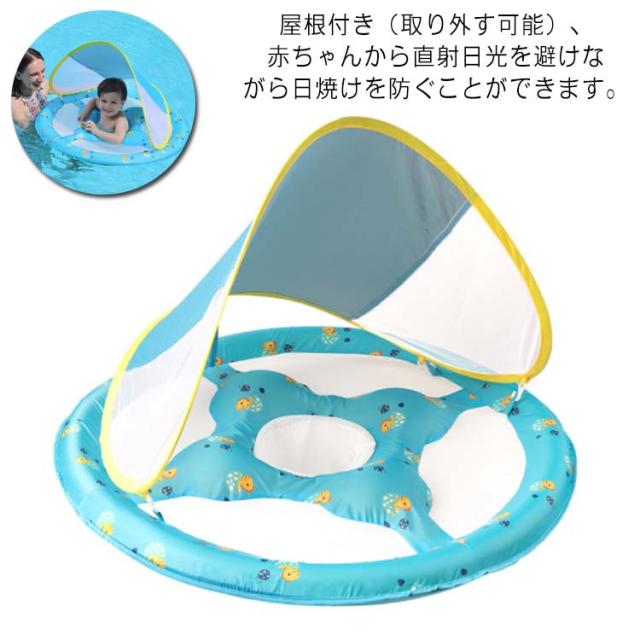 屋根付き 浮き輪 浮輪 浮き具 子供 子ども 子供用 幼児用 スイムリング ベビー キッズ 男の子 女の子 ビーチ 日焼け止め プール 海 フロート ボート 足入れタイプ 3歳 2歳 90cm 足穴 足抜き 座付き 水遊び 夏休み 親子