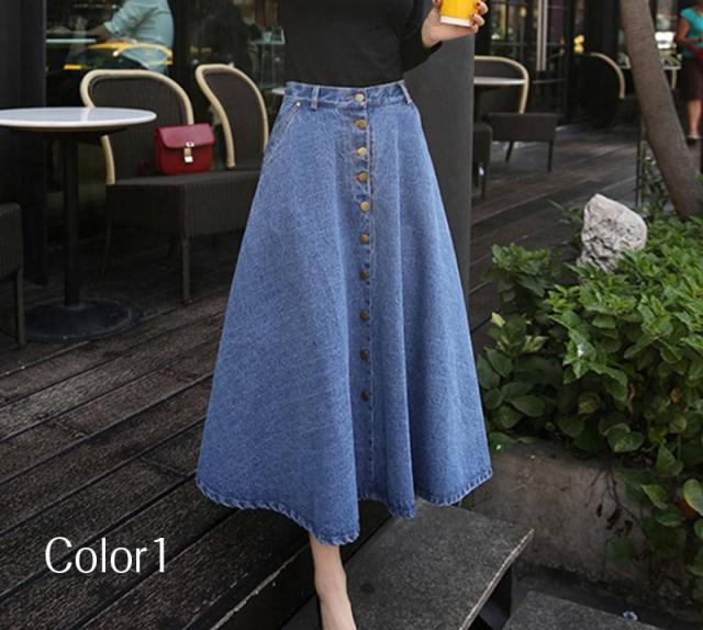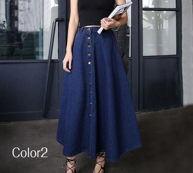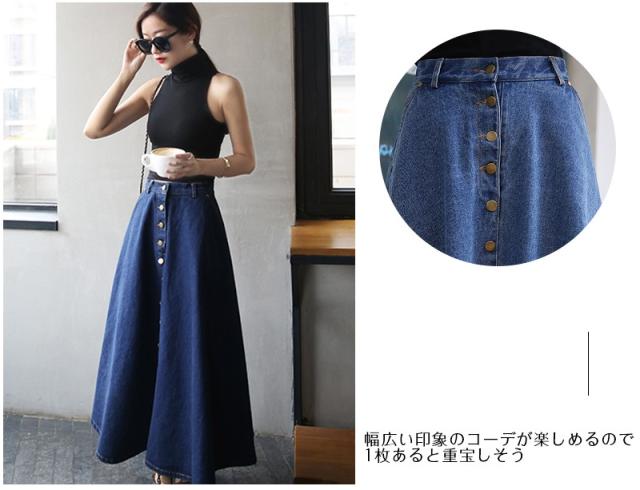秋・スカート レディースボトムス ひざ丈スカート ハイウエスト Aライン デニムスカート