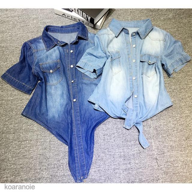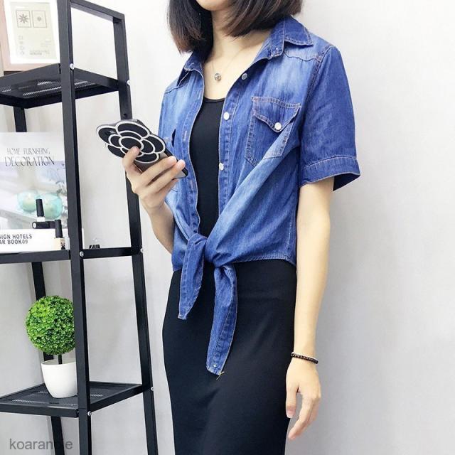 デニムシャツ レディース カーディガン ボレロ ダンガリーシャツ アウター カジュアル デニム 人気 半袖 UV 前結び 大きいサイズ