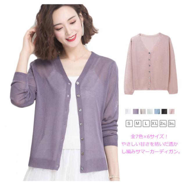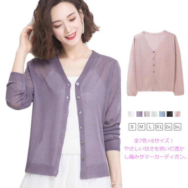 サマーカーディガン ニットソーカーディガン カディガン ニットカーディガン サマー 夏用 薄手 透け感 uvカット カーデ 羽織り Vネック 無地 シンプル 冷房対策 大人 かわいい 涼しい 送料無料