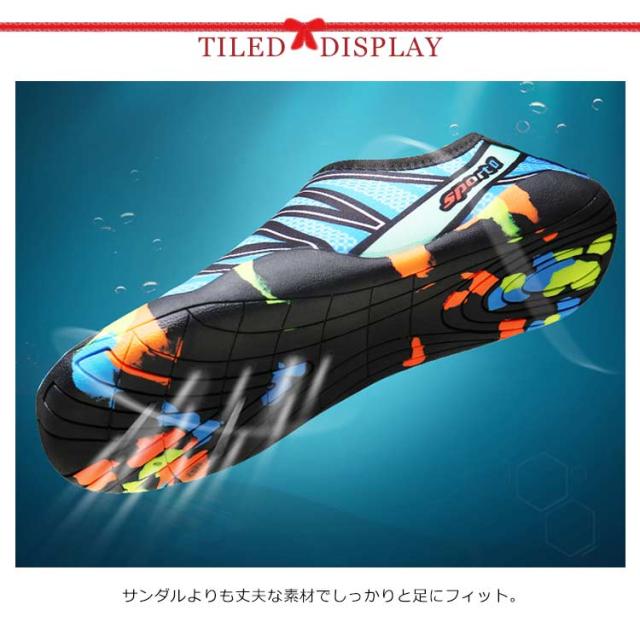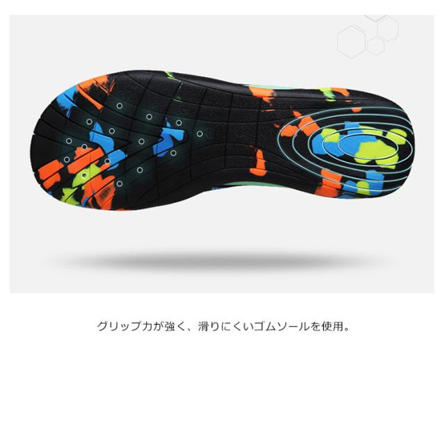 | マリンスポーツ・川などでの水遊び・ビーチプールサイド・ドライブやお出掛けに使える水陸両用シューズ。 サンダルよりも丈夫な素材でしっかりと足にフィット。 水場でも脱げることなく足をケガから守ります。 グリップ力が強く、滑りにくいゴムソールを使用。 滑りにくく、転倒する心配が軽減されて安心安全◎ 乾きやすい素材で、濡れた後にも扱いやすい。 そのまま車などの乗り物にも乗れる軽快さ! スニーカー感覚で履けて脱ぎ履きしやすく。 厚みのあるソールとアッパーがつま先から足の甲までしっかりカバー 軽量なのでストレスフリーで快適に過ごせる一足。 | |