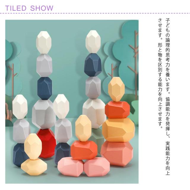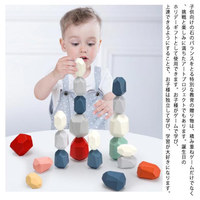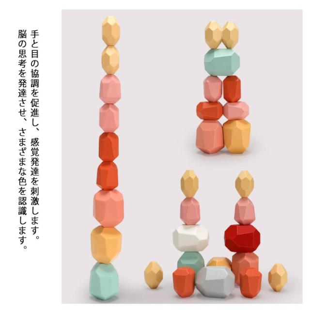 木製玩具 石 積石 木 ビルディングブロック バランスゲーム 知育玩具 1歳 1歳半 2歳 3歳 4歳 小学生 バランス おもちゃ 積み木ブロック 天然 木製 石子 カラフル スタッキングゲーム 積み重ねる石