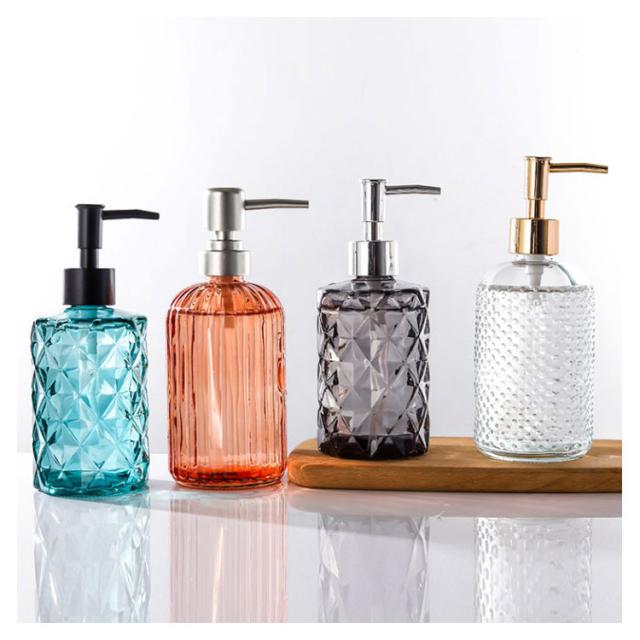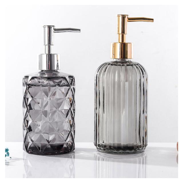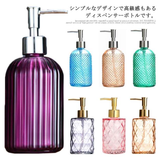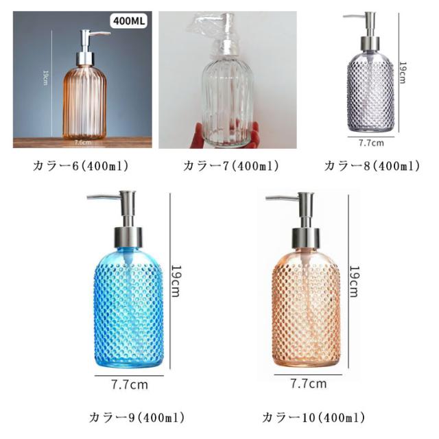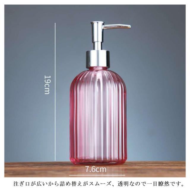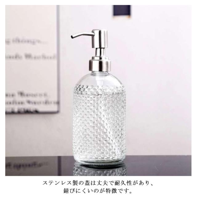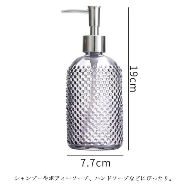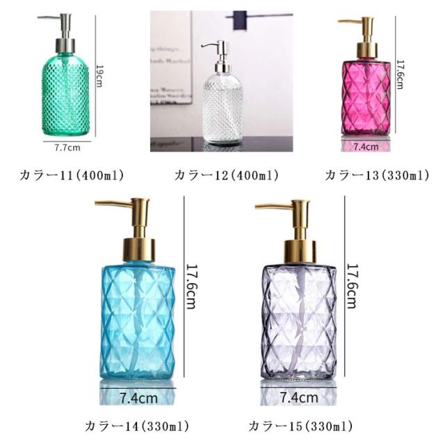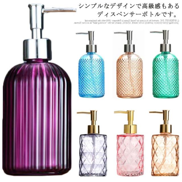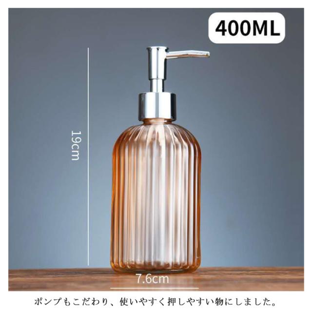 詰め替えボトル ガラス おしゃれ お風呂 シャンプーボトル 詰め替え ソープディスペンサー 浴室収納 容器 キッチン 洗剤 ハンドソープ 石鹸 手洗い 半透明 ボディソープ 400ml 330ml 送料無料