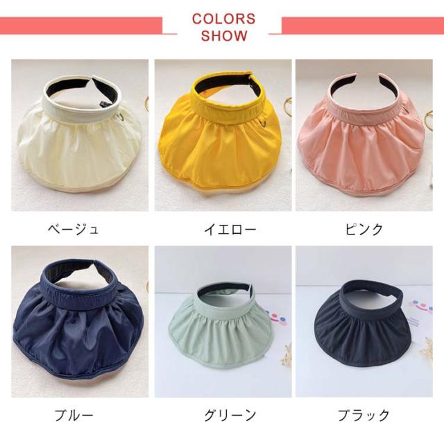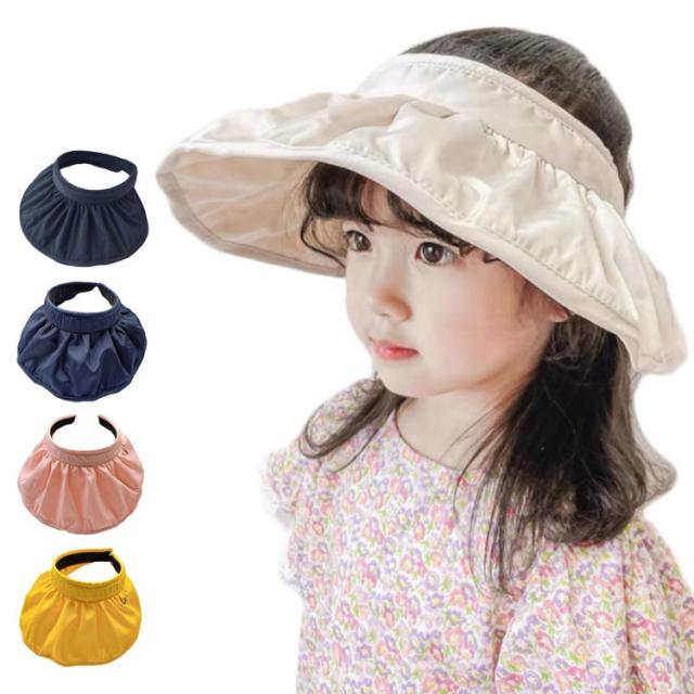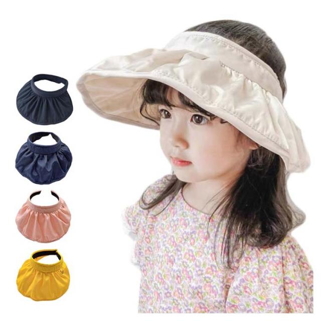子供 折りたたみ 帽子 キャップ 麦わらサンバイザー キッズ用 夏 薄手 くるくる UVカット 女の子 おしゃれ かわいい サンバイザー帽子 マジックテープ調節 韓国 無地 シンプル カジュアル