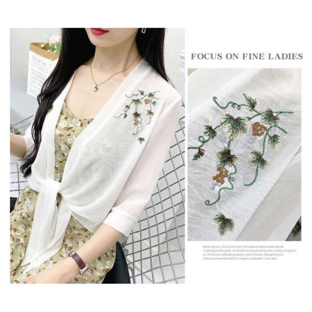 半袖?カーディガン レディース? 半袖?薄手?シフォンカーディガン カーディ?トップス?Vネック?カーディガン 夏 シンプル 刺繍 ゆったり 無地 Vネック アウター 送料無料 トップス