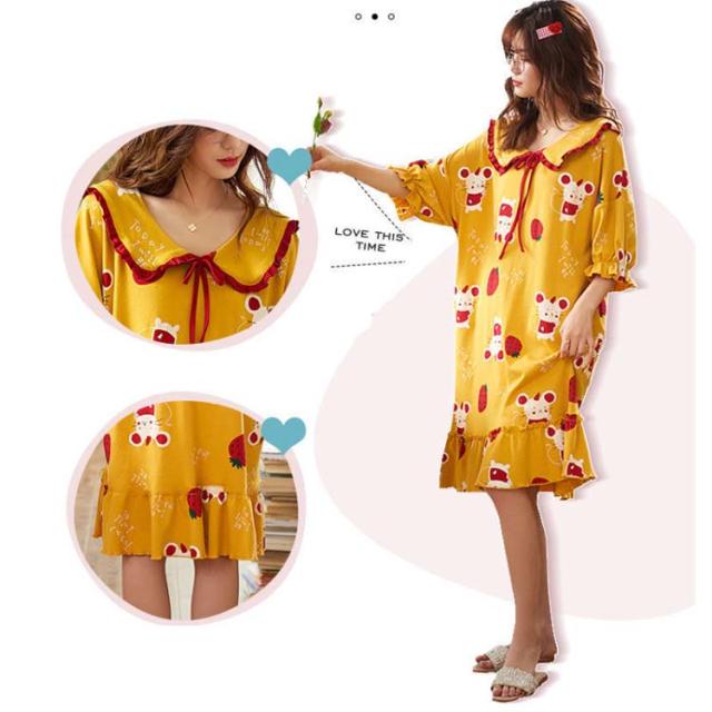 | 丸みを帯びたフリルの襟元にリボンの飾りがついていて、見た目が甘く可愛らしい。ソフトで快適な生地が快適な睡眠体験を提供し、可愛いデザインでお姫様のように見えます。 肌触りが柔らかく、吸汗性にも優れており、汗をかいてもサッと吸収してくれるので蒸れにく、お風呂上りにも気持ちの良い素材です。 薄手のワンピースのパジャマ、夢のようなパジャマ。可愛らしさの中でもセクシーさがあります。 ゆったり設計なので着脱に便利!ストレスなく着用して頂ける半袖ワンピースパジャマです。 足首に近い長さのワンピースのパジャマ。なめらかな生地が肌を覆ってひんやりとし、夏には心地よい。 | |