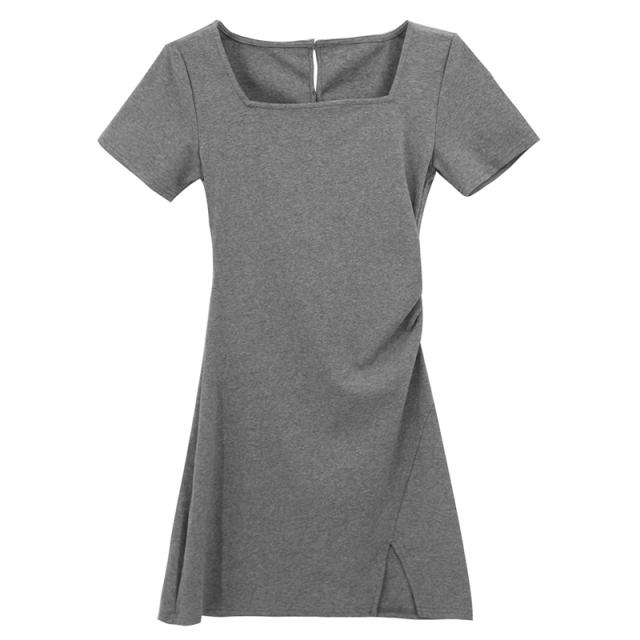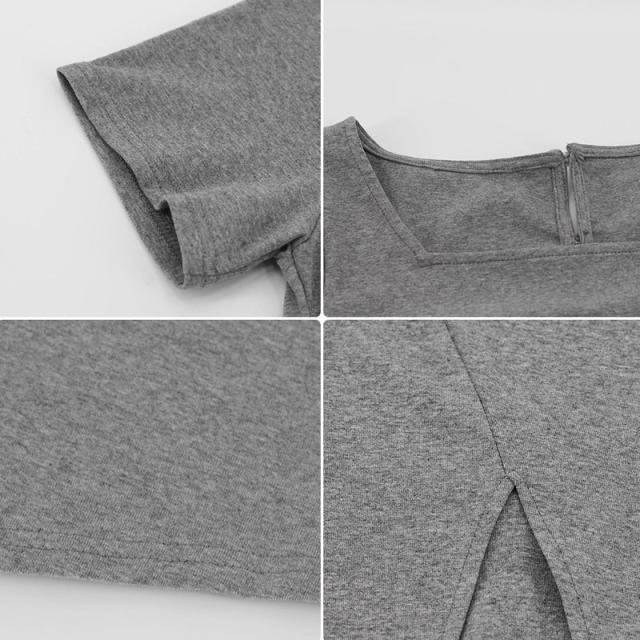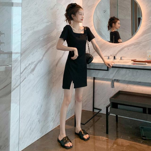 着痩レトロスリットインナーワンピース大きいサイズ細身エレガントtシャツ夏秋