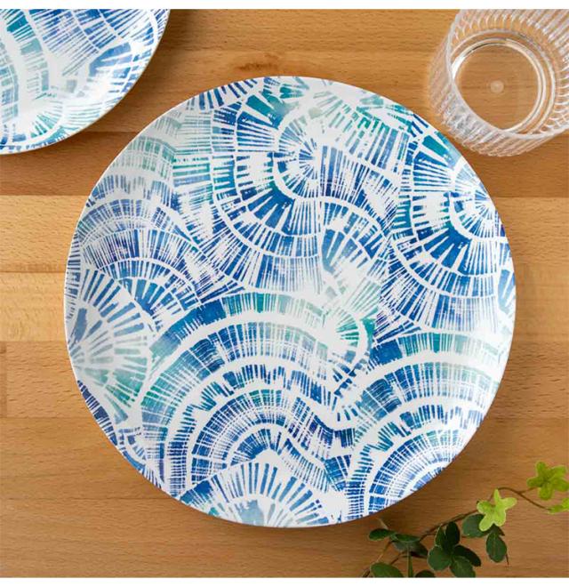 爽やかなブルーとホタテの柄をモチーフにしたメラミン食器です