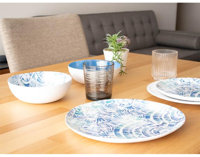 メラミンは軽くて割れにくく、手入れもしやすいのが特徴です。テーブルウェアコレクションでは、シンプルでスタイリッシュなものから、おしゃれな欧風デザイン、和食器テイストまでラインアップが豊富です。