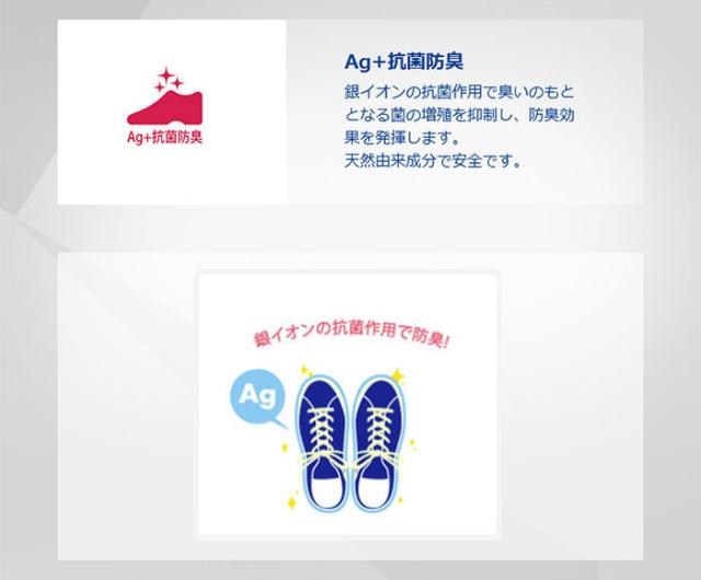 【Ag+抗菌防臭】銀イオンの抗菌作用でにおいのもととなる菌の増殖を抑制し、防臭効果を発揮します。天然由来成分で安全です。