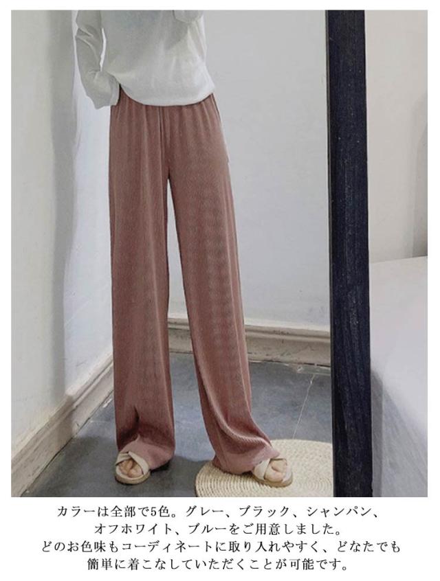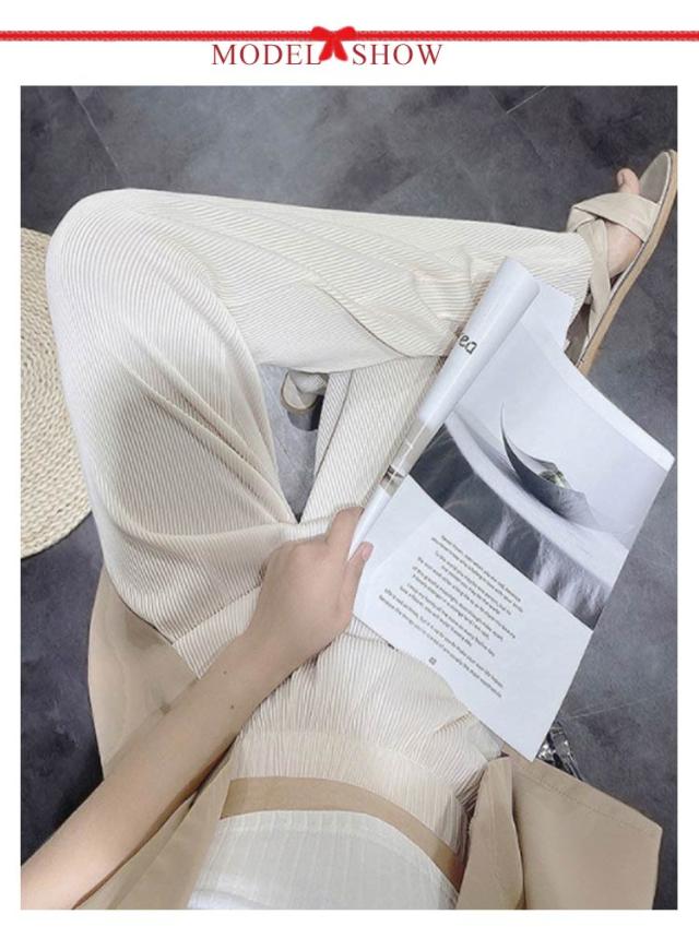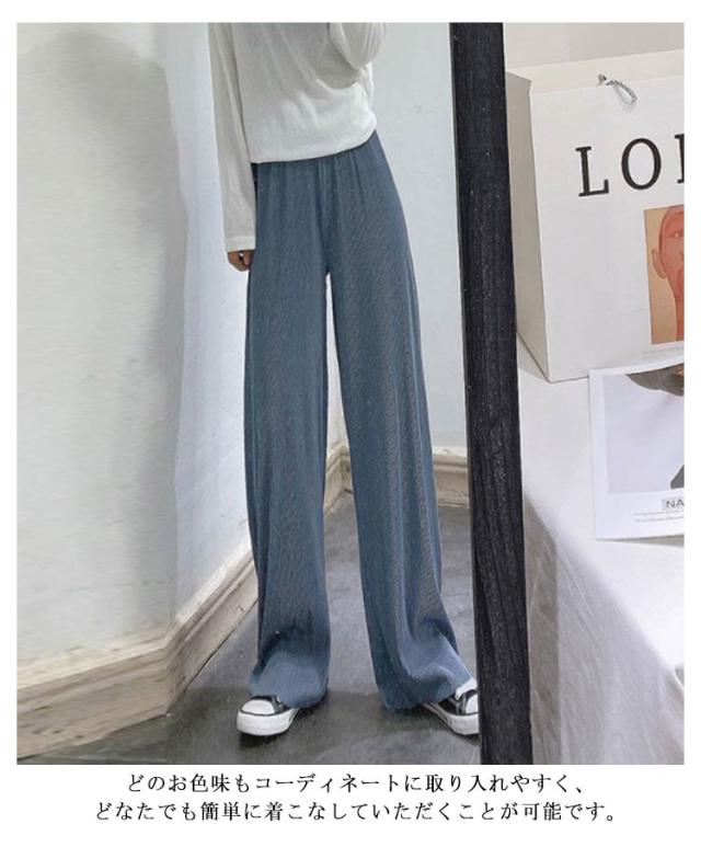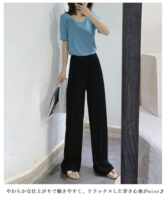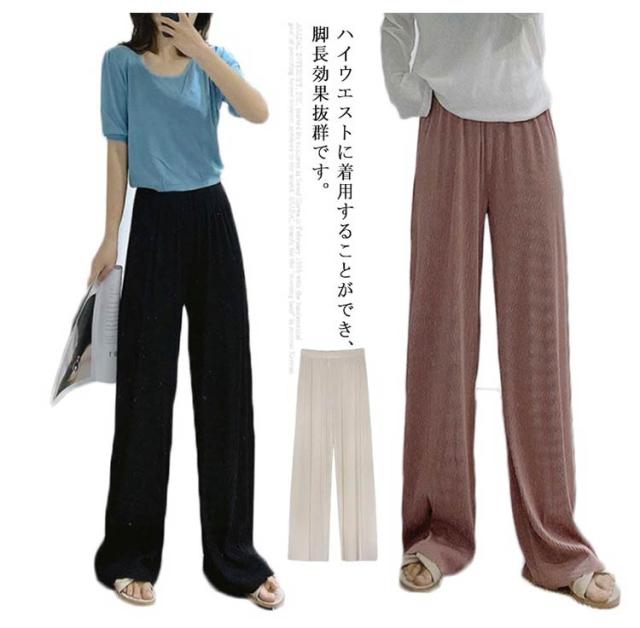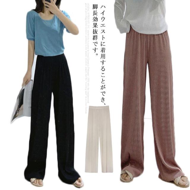 【送料無料】ロングパンツ ロング 無地 シンプル おしゃれ 薄手 春 夏 秋 ゴムウエスト 体型カバー ゆったり プリーツ ボトムス レディース 冷感