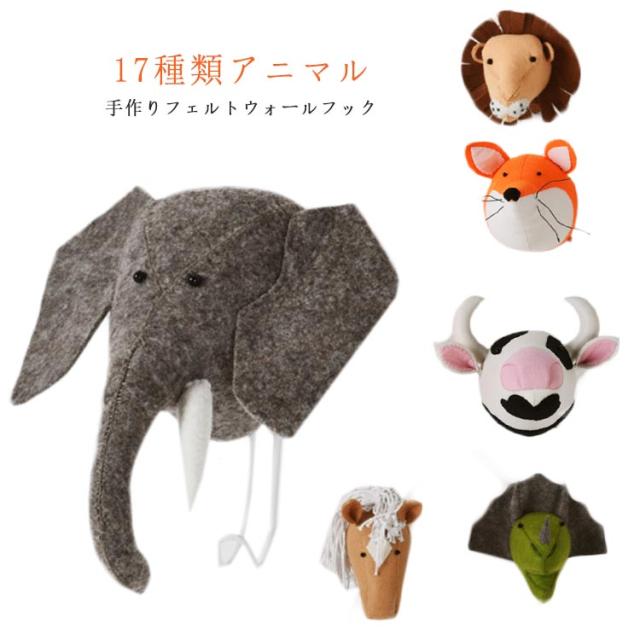 手作り フェルト ウォールフック アニマル 手作り フック 動物 おしゃれ 壁掛けフック フェルト手芸 象 キリン ウサギ 恐竜 ダイナソー 羊 ライオン クマ 犬 馬 鮫 フォックス シマウマ 北欧 インテリア 雑貨