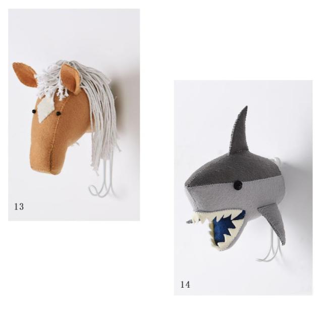 | 安心のフェルト素材使用!大切なお子さまが使うものだから安全、安心なものを使いたいですよね。 フェルトは全て型抜き済みだから簡単に作ることができます。手作りならではの優しさ、温かさが伝わります。 ウォールフックとして使用可能なので、鍵やキッチンツール、ネックレスやベルト等を掛けたり出来、お部屋や玄関、クローゼット等色んな場所で飾りましょう。 | |