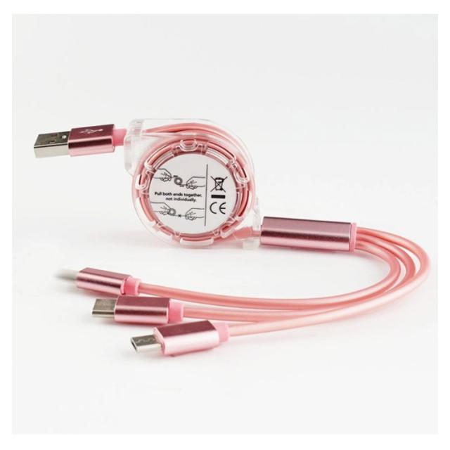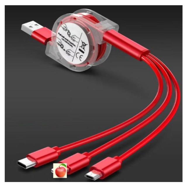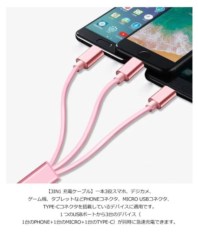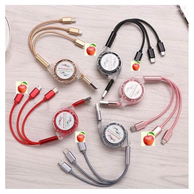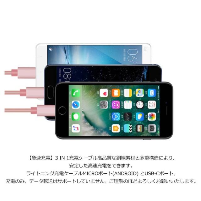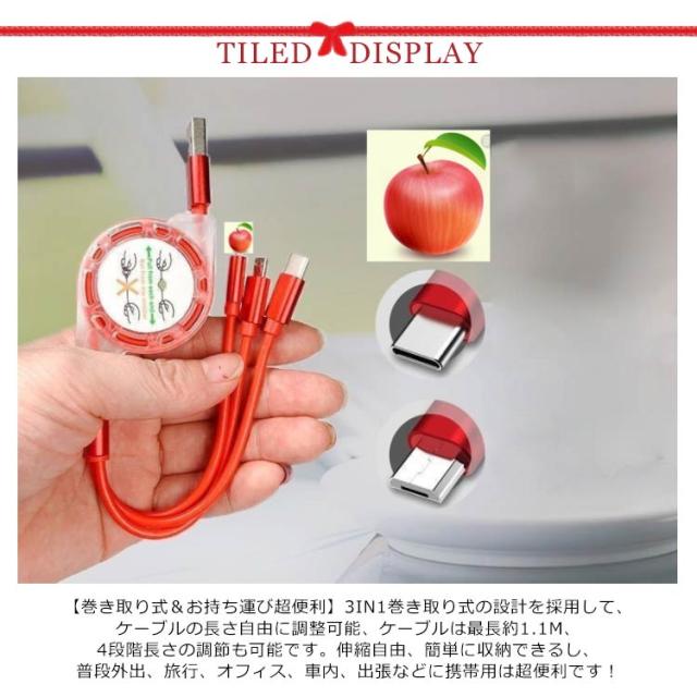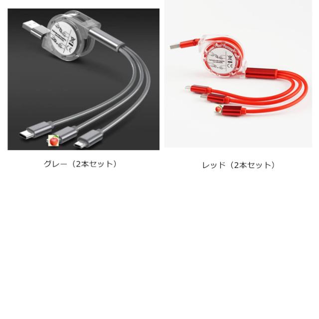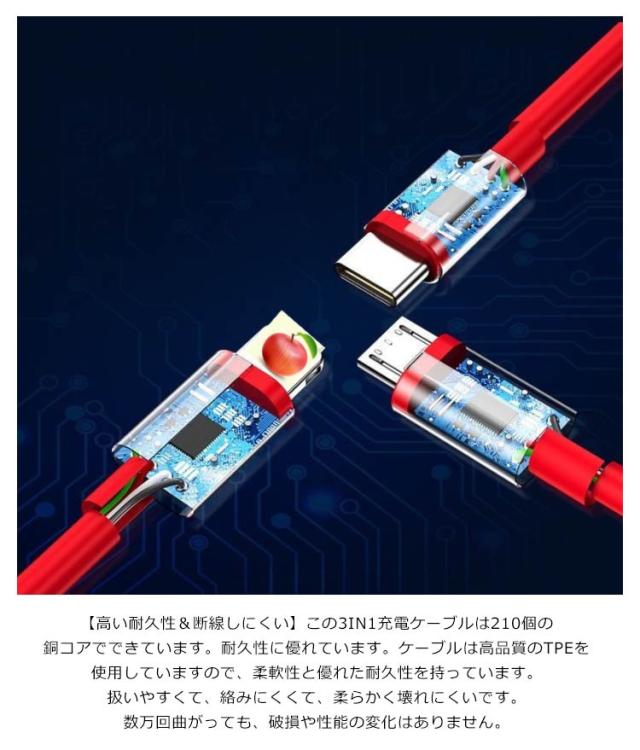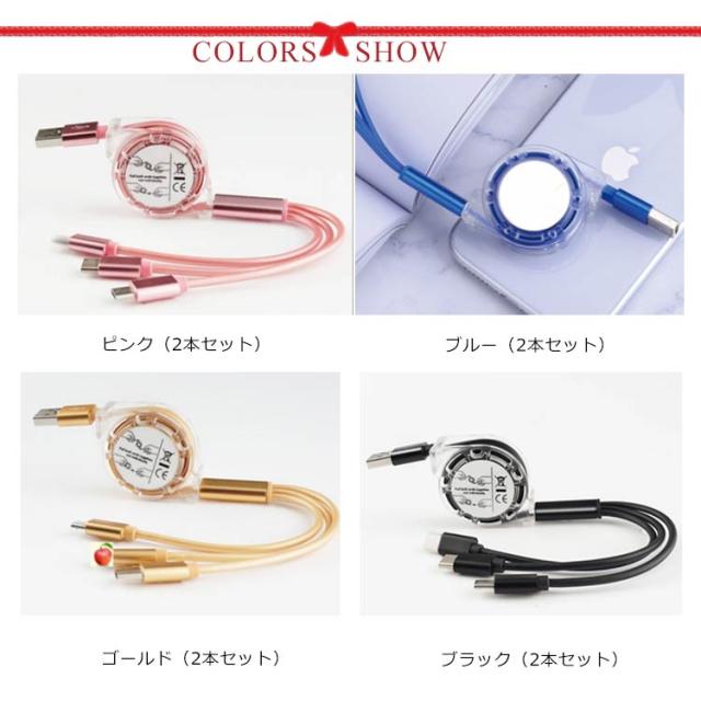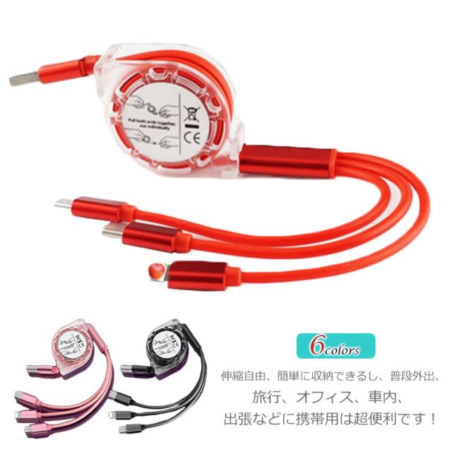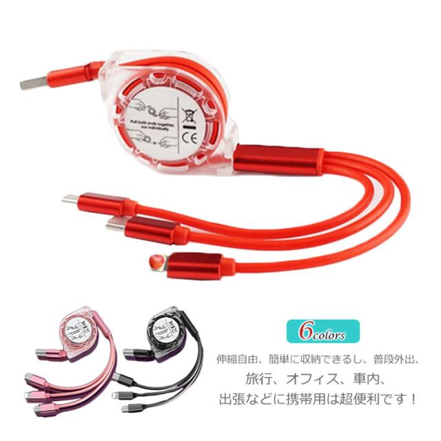 【2本セット】充電ケーブル 3in1 3.5A大電流 iphone 巻き取り 持ち運び 充電ケーブル 一本三役 急速充電
