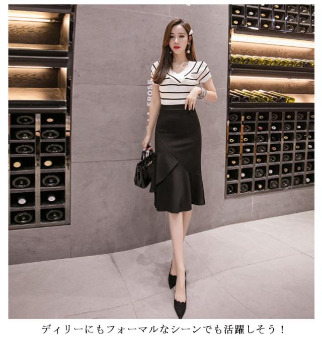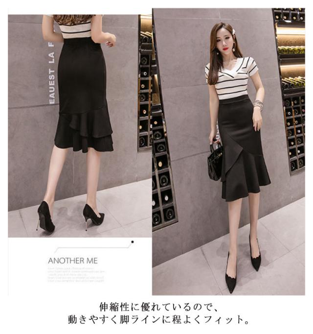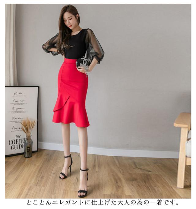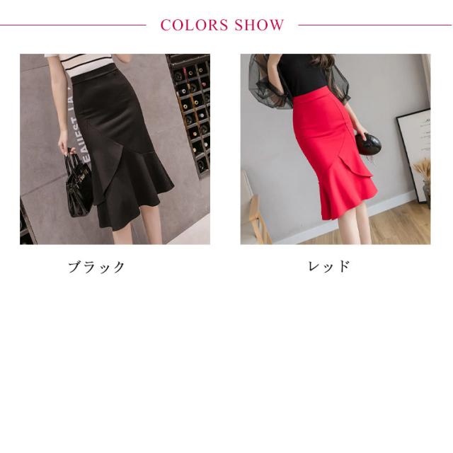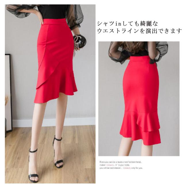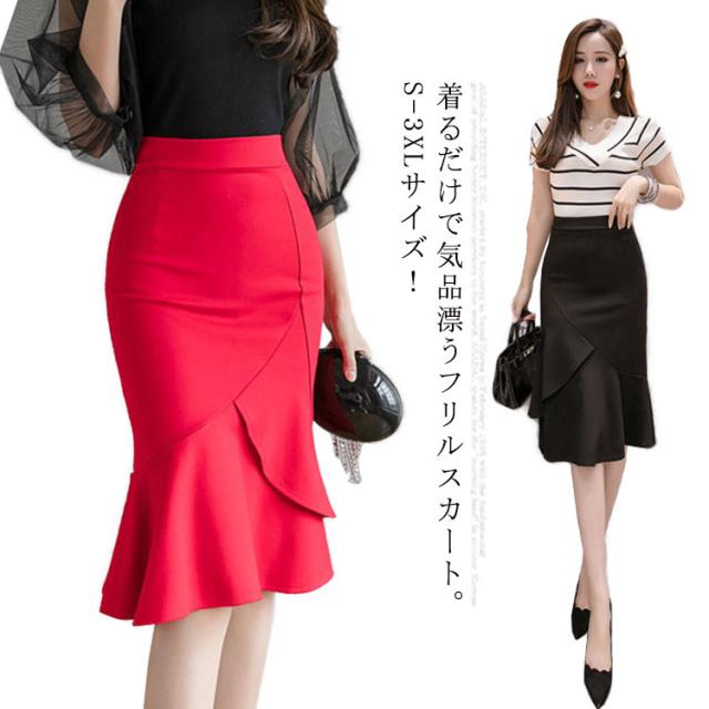 S−3XLサイズ!マーメイドシルエット タイトスカート スカート フリルスカート 通勤スカート フリル ハイウエスト 春夏 ストレッチ 美ライン 春夏 ブラック レッド 大人 エレガント 送料無料