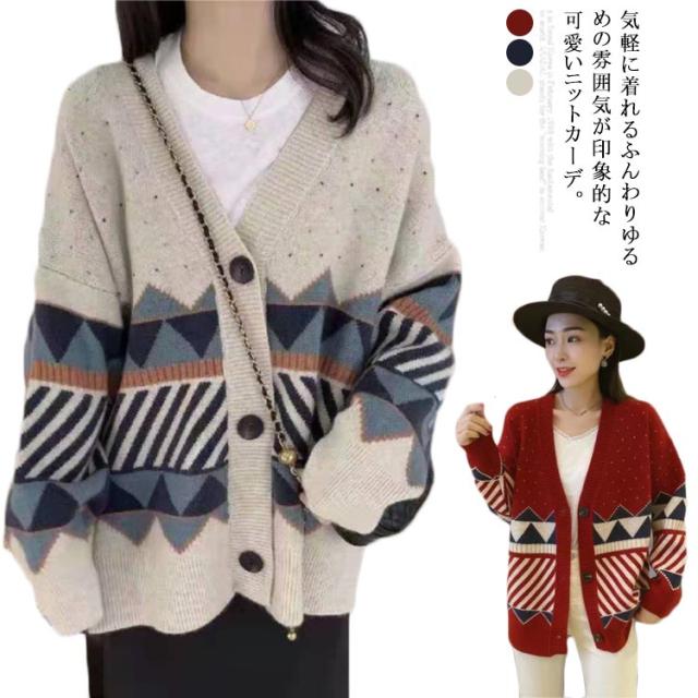 ニット カーディガン レディース カジュアル 長袖 ニットカーデ 前開き 体型カバー 羽織り セーター アウター シンプル コーディネート Vネック おしゃれ 通勤 通学 春秋冬