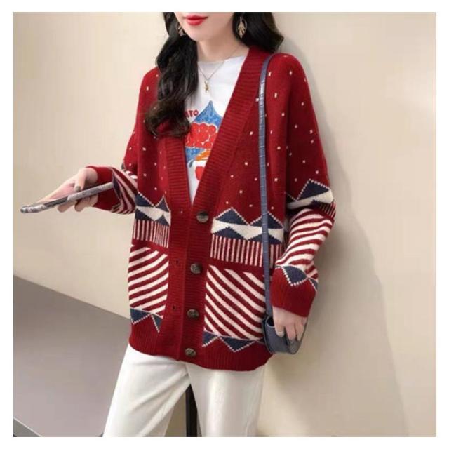 | 気軽に着れるふんわりゆるめの雰囲気が印象的な可愛いニットカーデ。 首回りはデコルテがキレイに見せるすっきりとしたVネック。 ゆったりとしたシルエットで気になる体型カバー効果あり! トップスとして着回し力が抜群で、秋冬にはもちろん春先までも活躍できます。 | |