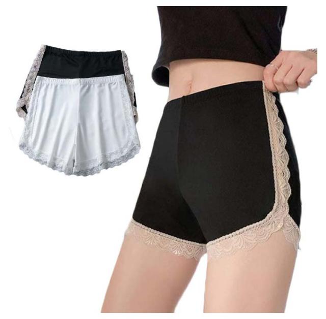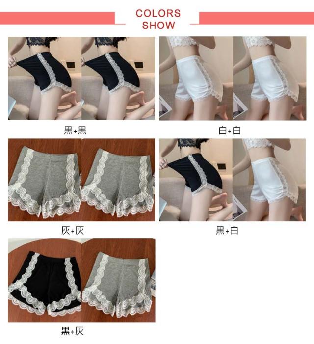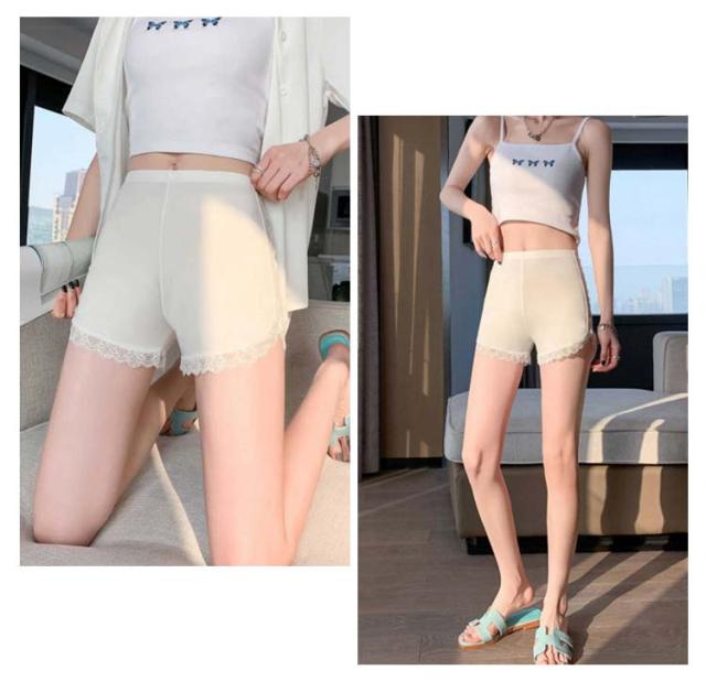 2枚組?ショーツ?インナー?レディース?ボクサーパンツ 夏 ショ-トパンツ インナーパンツ ハイウエスト?ショート 無地 レース付き下着 ペチパンツ 肌着 安全パンツ 短パン 部屋着