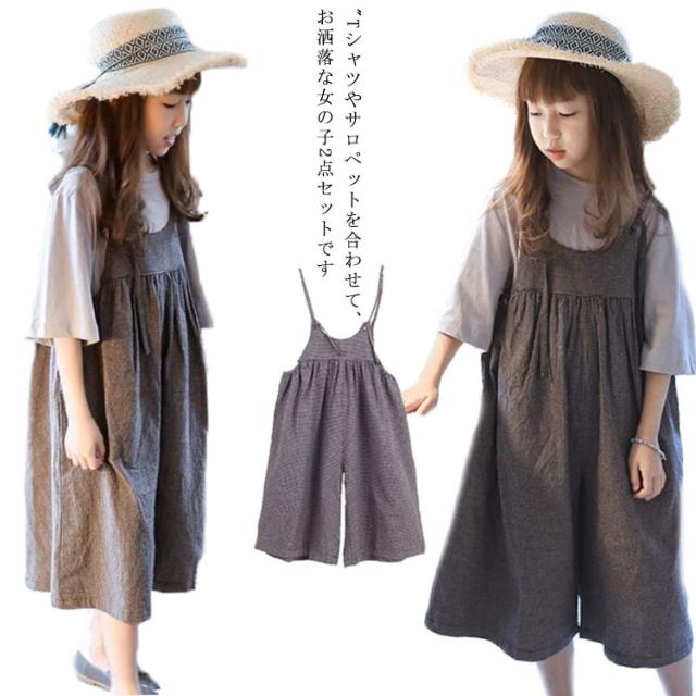 子供服 女の子 サロペット 半袖Tシャツ 2点セット ワイドパンツ 夏物 ガールズ ガウチョパンツ オーバーオール 7分丈 上下セット オールインワン 通園 通学 お洒落 お出かけ 普段着 送料無料