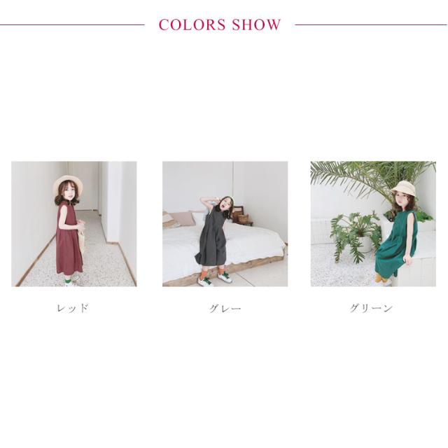 | サイズについての説明 | 7 総長59cm バスト60cm 身長95-100cm 9 総長62cm バスト62cm 身長100-105cm 11 総長65cm バスト66cm 身長105-115cm 13 総長68cm バスト68cm 身長115-120cm 15 総長70cm バスト70cm 身長120-130cm ※下記サイズは平置き実寸になります。 サイズ表の実寸法は商品によって1-3cm程度の誤差がある場合がございます。 |