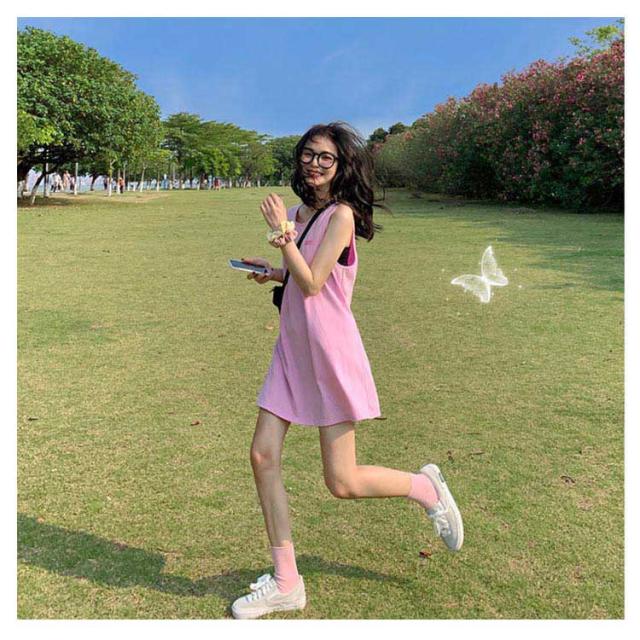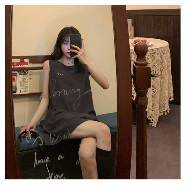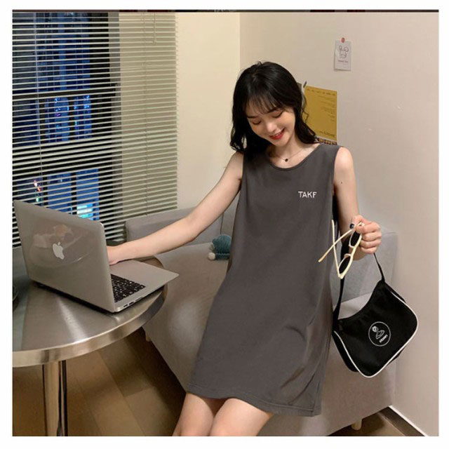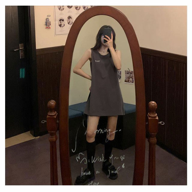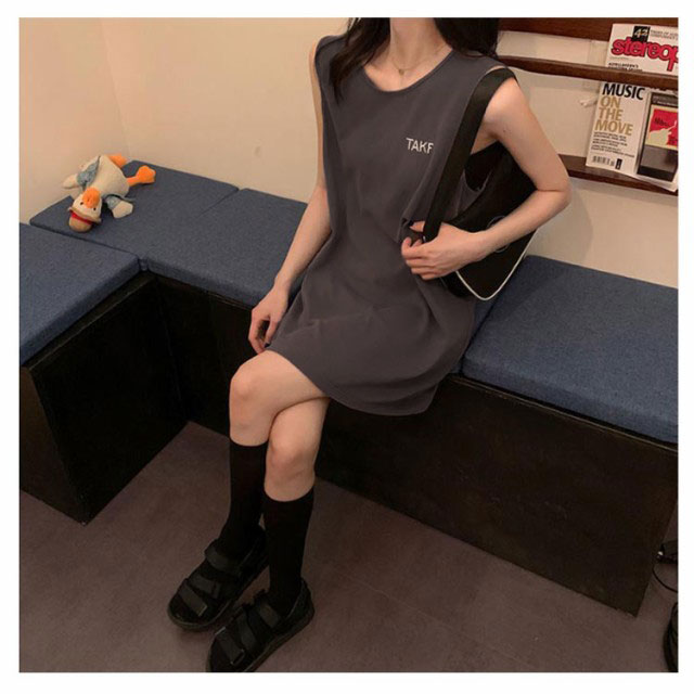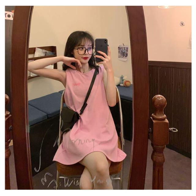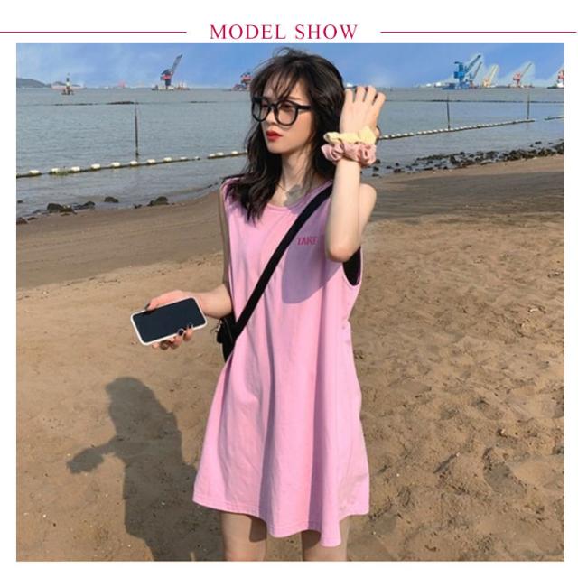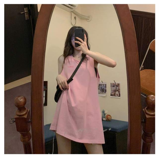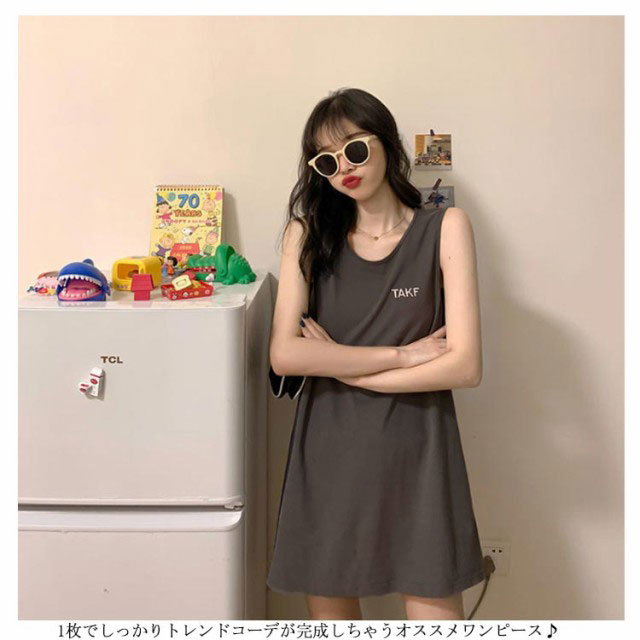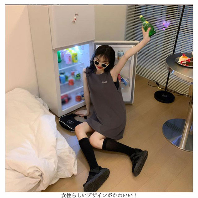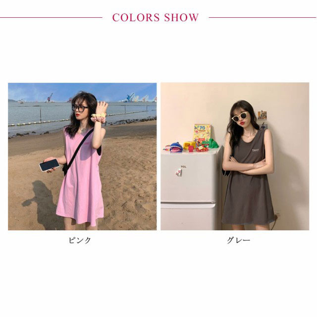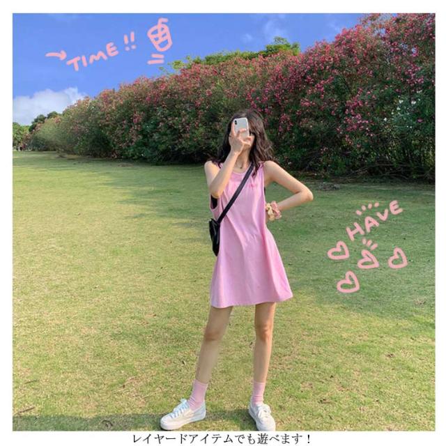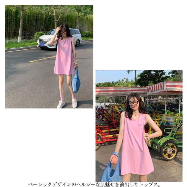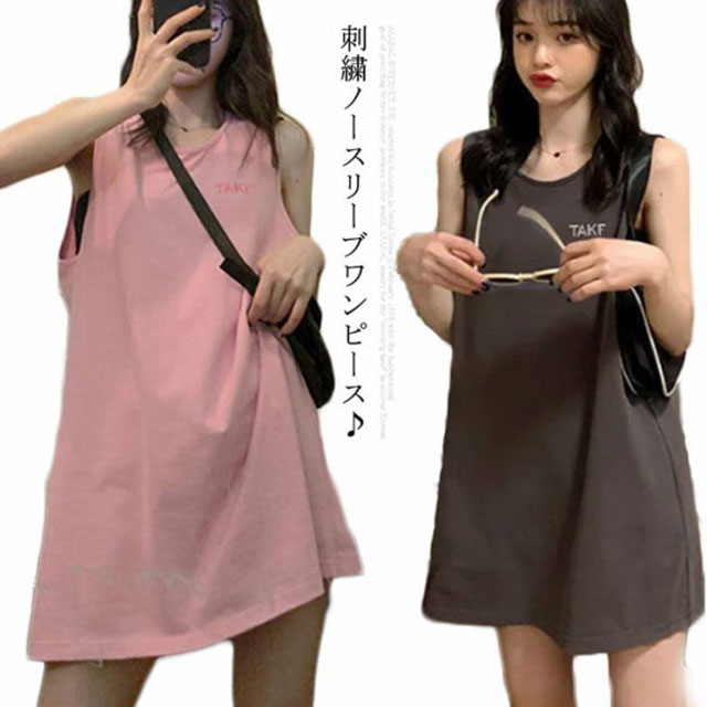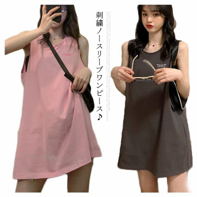 刺繍 ノースリーブ ワンピース レディース ノースリーブ カットソー トップス タンクトップ Tシャツ ロング丈 チュニック ワンピ ロンT 膝上丈 レイヤード 韓国ファッション 送料無料