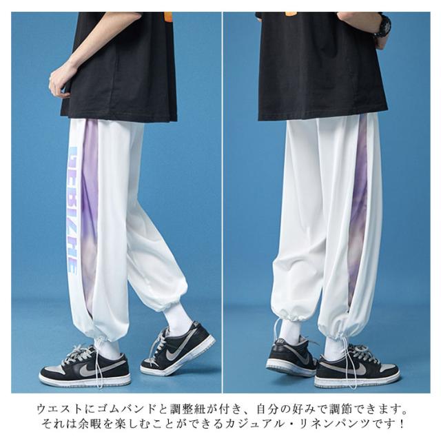 リネン パンツ メンズ 薄手 ワイドパンツ チノパン サルエルパンツ ジョガー クロップド 細身 9分丈 7分丈 ゴム イージーパンツ リラックス カジュアル ゆったり 涼しい 春夏秋