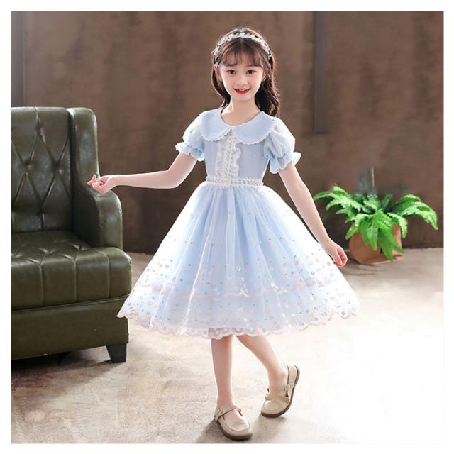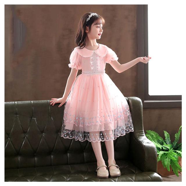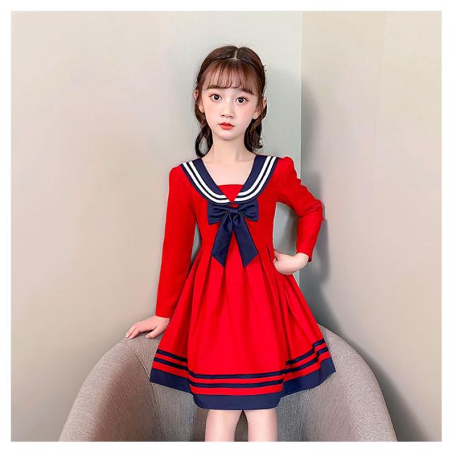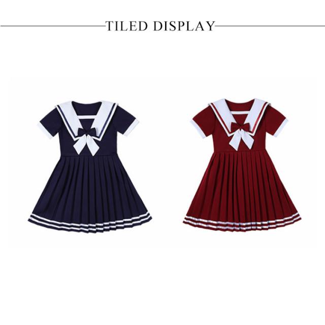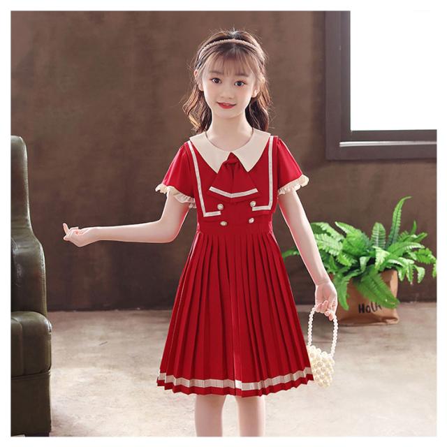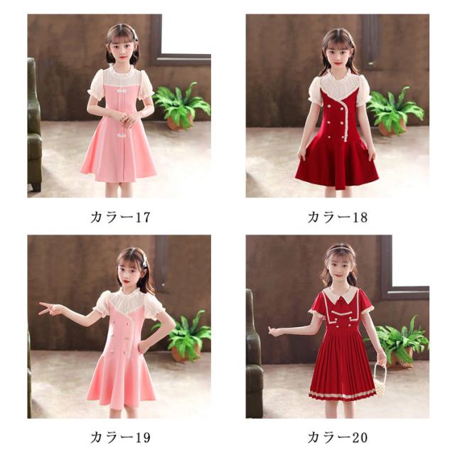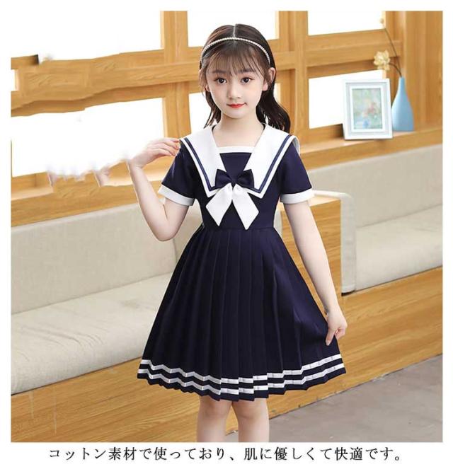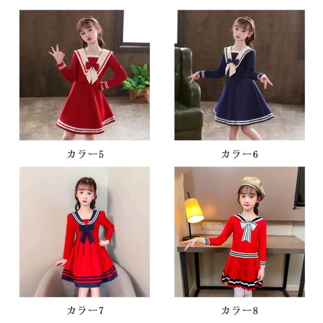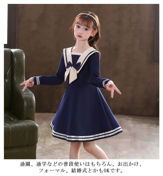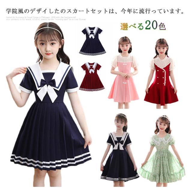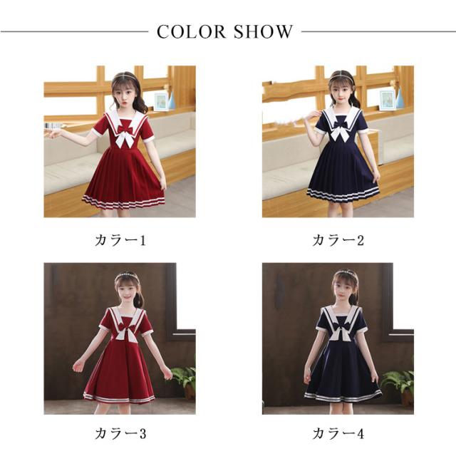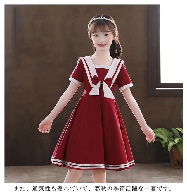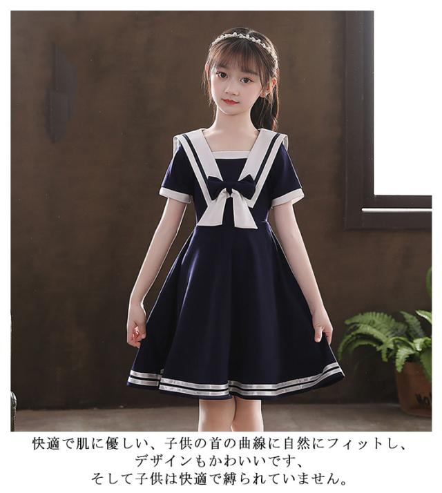 ワンピース 女の子 子供服 キッズドレス 半袖 海軍風 キッズ服 可愛い 子供ドレス ロングスカート スカート カジュアル 夏服 普段着 通園 通学 夏 秋 おしゃれ