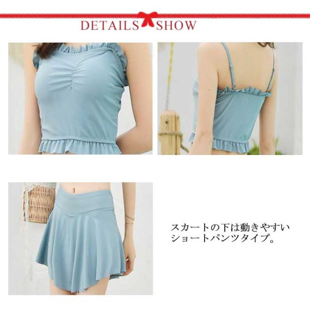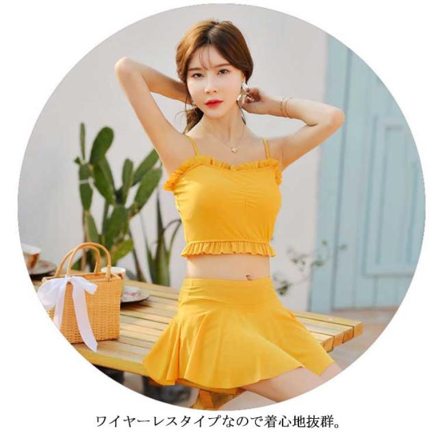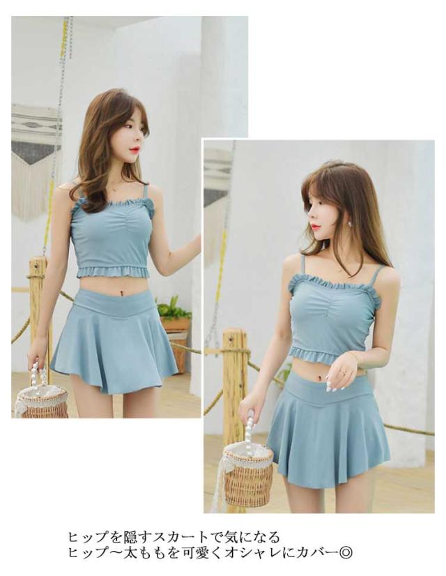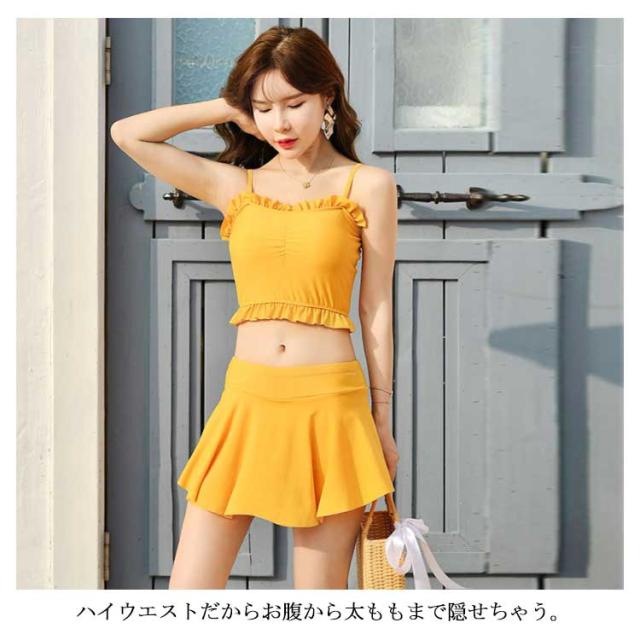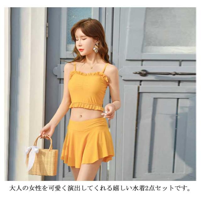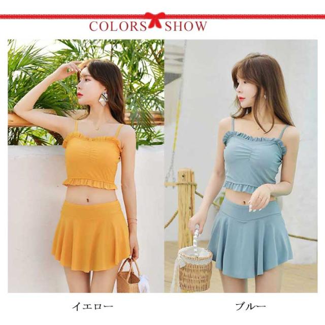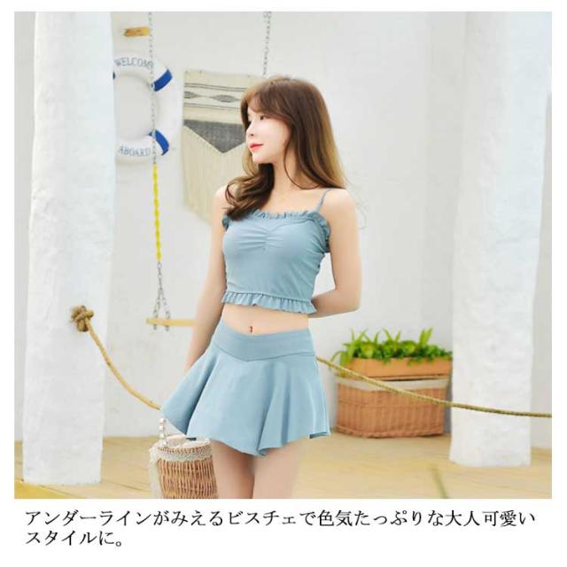 送料無料水着 レディース 体型カバー タンキニ水着 ビキニ スカート 2点セット シンプル 無地 フレア フリル 胸元 ウエスト 太もも お尻 カバーアップ ガールズ スイムウェア スイミング 海水浴