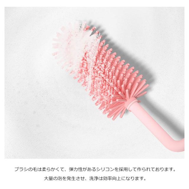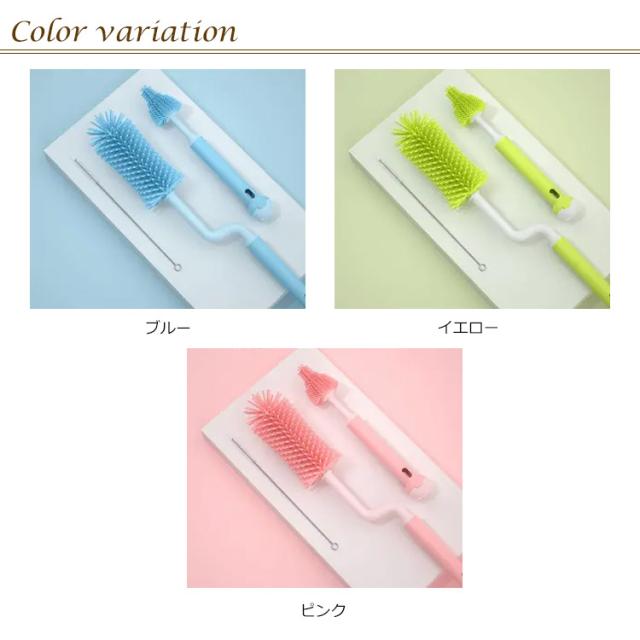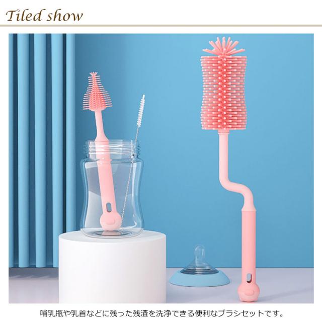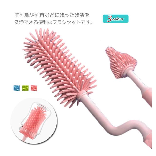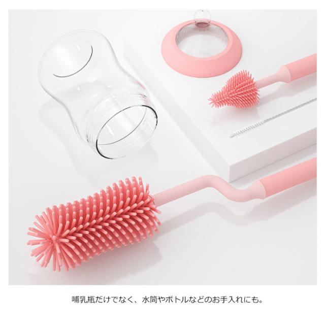 ボトルブラシ 哺乳瓶ブラシ シリコン 乳首ブラシ 水筒 洗浄ブラシ ブラシセット ロング ハンドル 長い 3点セット 360度回転 吸盤式 使いやすい 持ち運び ベビー用品 グラス カップ 洗い 出産お祝い 送料無料