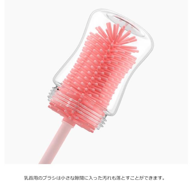 | 哺乳瓶や乳首などに残った残渣を洗浄できる便利なブラシセットです。 ブラシの毛は柔らかくて、弾力性があるシリコンを採用して作られております。大量の泡を発生させ、洗浄は効率向上になります。 360°回転可能なので、ハンドルを回してぐるぐる回転洗い! 乳首用のブラシは小さな隙間に入った汚れも落とすことができます。 お湯に強くて衛生で安全にご使用いただけます。 哺乳瓶だけでなく、水筒やボトルなどのお手入れにも。 | |