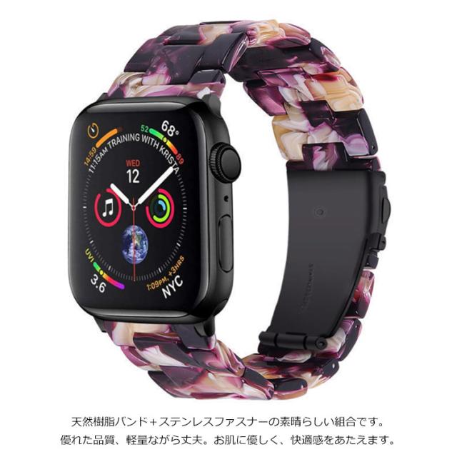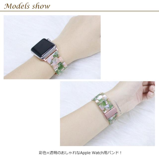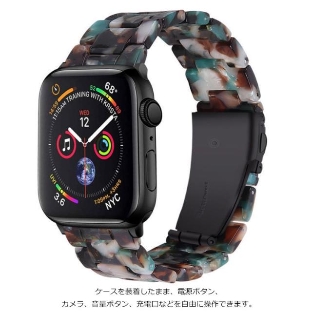 | 彩色×透明のおしゃれなApple Watch用バンド! 天然樹脂バンド+ステンレスファスナーの素晴らしい組合です。優れた品質、軽量ながら丈夫。お肌に優しく、快適感をあたえます。 長時間使用の間てバンドは変なにおいが出てきません。本革より耐水性に優れ、清潔もより便利です。 日常、運動中にもフィットできます。アウトドア、スポーツ活動時にも、大切なApple Watchをしっかり保護。 ケースを装着したまま、電源ボタン、カメラ、音量ボタン、充電口などを自由に操作できます。 | |