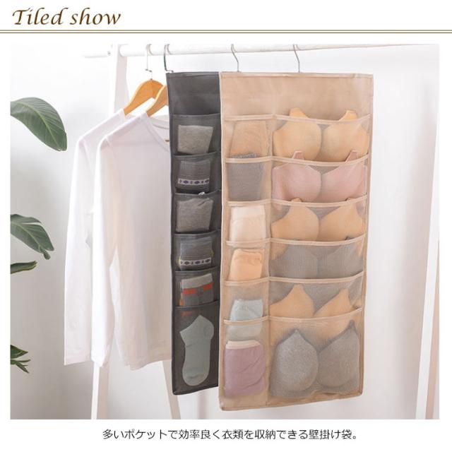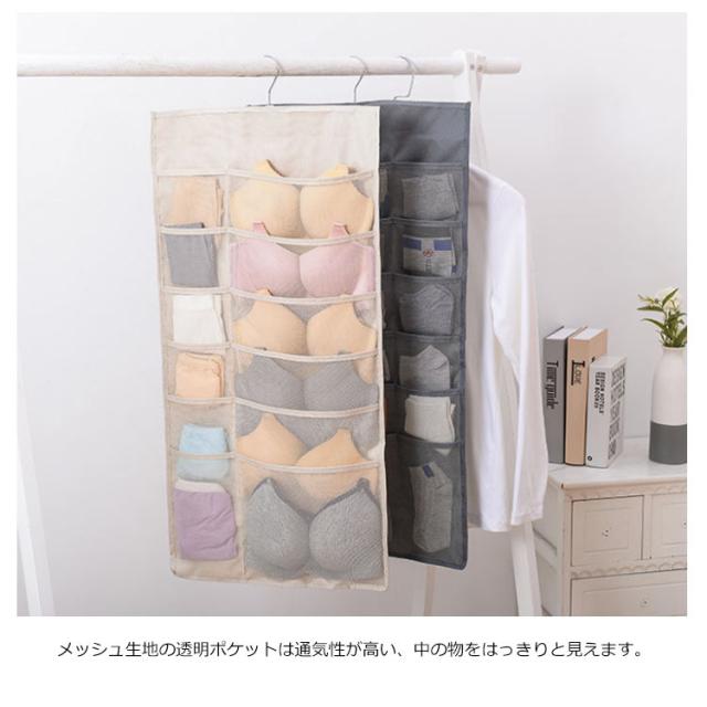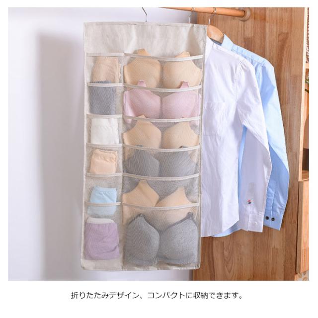 下着収納 吊り下げ下着収納 吊り下げ収納袋 男女適用 靴下収納 パンツ収納 両面収納 ブラジャー収納ケース クローゼット ソックス収納 省スペース 壁掛け収納袋 分類 ポケット 送料無料