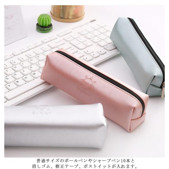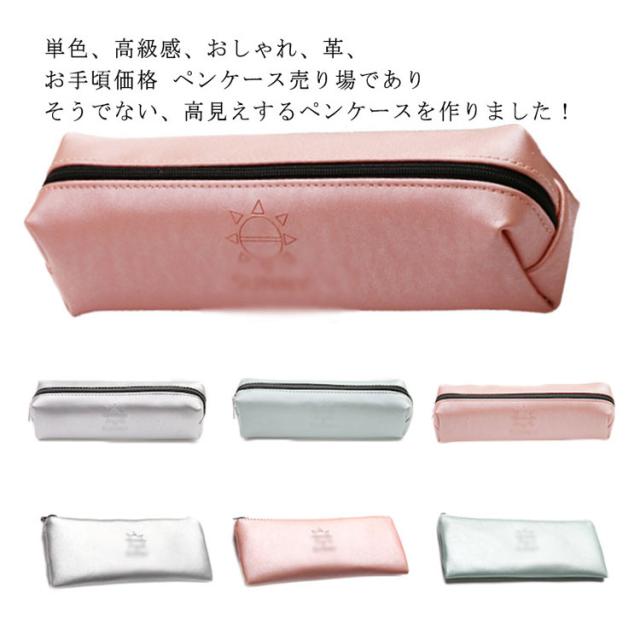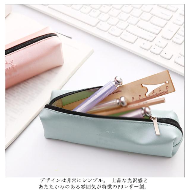 ペンケース ペンポーチ 革 PUレザー 筆箱 大容量 収納 軽量 小物入れ 女の子 中学生 小学生 高校生 女子高生 スリム ふで箱 文房具 ふでばこ 化粧ポーチ コスメケース ファスナー 薄型