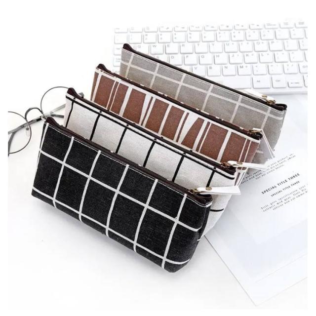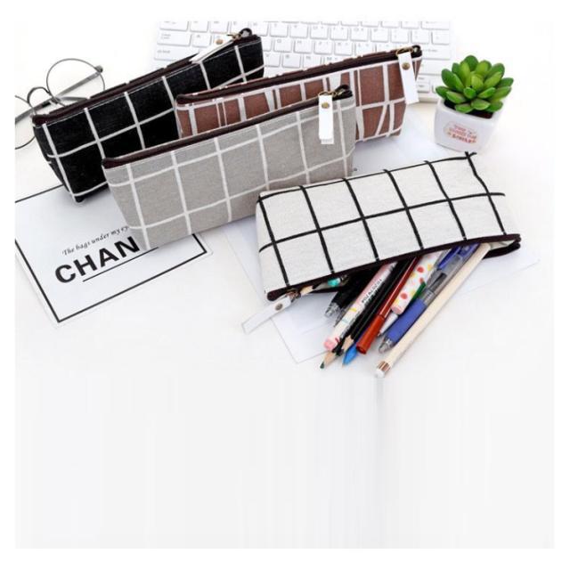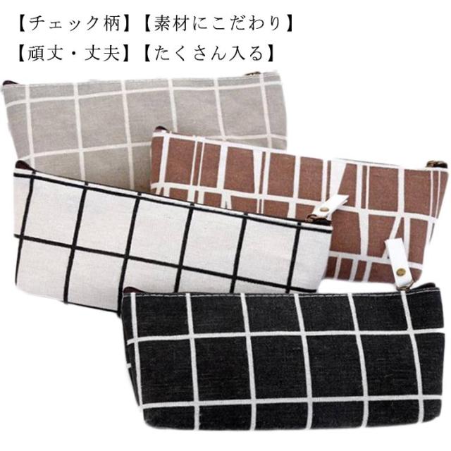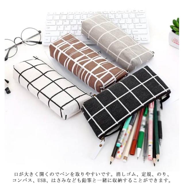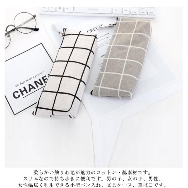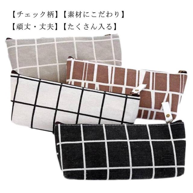 ペンケース チェック柄 ペンポーチ 筆箱 大容量 収納 軽量 小物入れ 女の子 男の子 中学生 小学生 高校生 女子高生 学校用 スリム ふで箱 ふでばこ ジップ式 ファスナー式 薄型