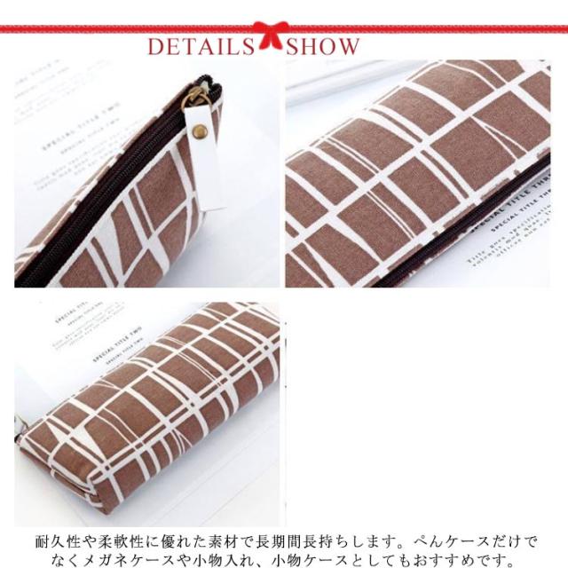 | 【チェック柄】シンプル好きの方におすすめのペンケースです。中学生、高校生、大学生の学生や、社会人の大人の方におすすめのぺんケースです。 【素材にこだわり】柔らかい触り心地が魅力のコットン・綿素材です。スリムなので持ち歩きに便利です。男の子、女の子、男性、女性幅広く利用できる小型ペン入れ、文具ケース、筆ばこです。 【頑丈・丈夫】耐久性や柔軟性に優れた素材で長期間長持ちします。ぺんケースだけでなくメガネケースや小物入れ、小物ケースとしてもおすすめです。 【たくさん入る】口が大きく開くのでペンを取りやすいです。消しゴム、定規、のり、コンパス、USB、はさみなども鉛筆と一緒に収納することができます。 | |