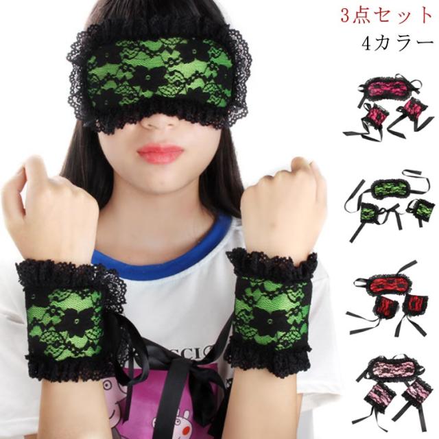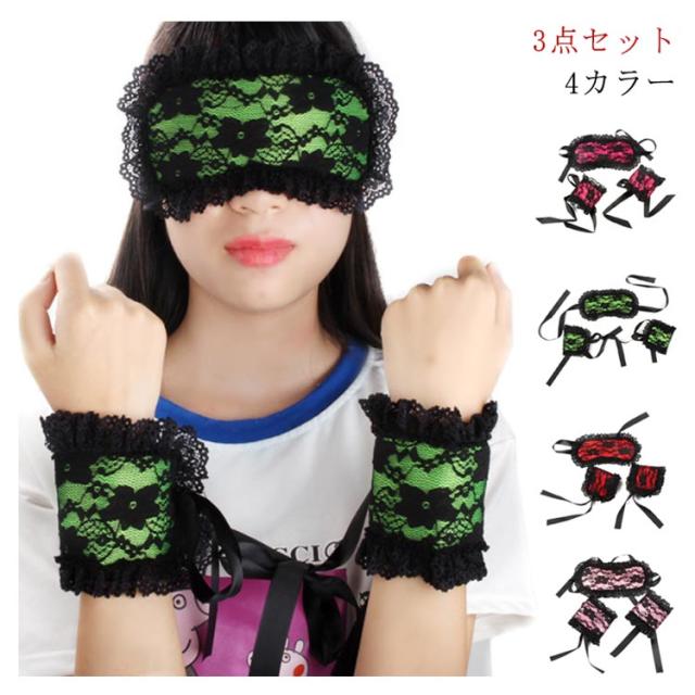 セクシーコス セクシーコスプレ レース アイマスク セクシー 手錠 3点セット レディース 花柄 レース セクシー下着 衣装 変装 セクシー 小物 雑貨 ハロウィン アイマスク 束縛リストバンドセット 手枷 手錠 拘束