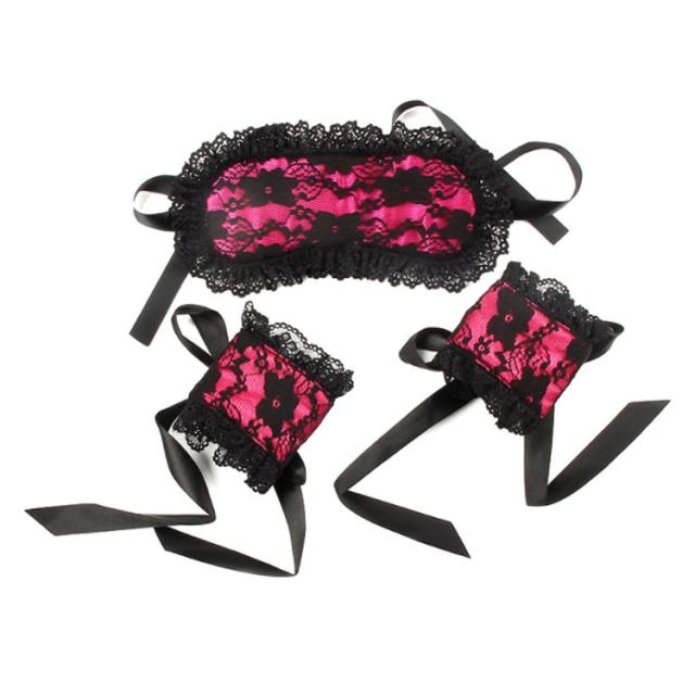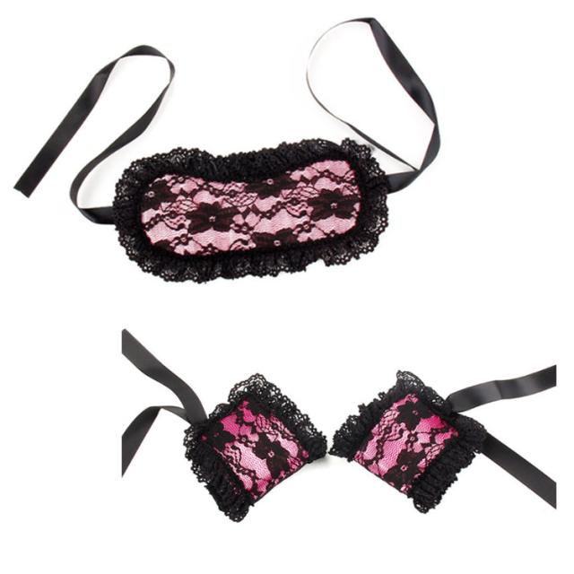 | ピンクのサテンを黒のレースで包み込んだ アイマスクと手枷のセットです。 優しく激しく楽しんで... | |
